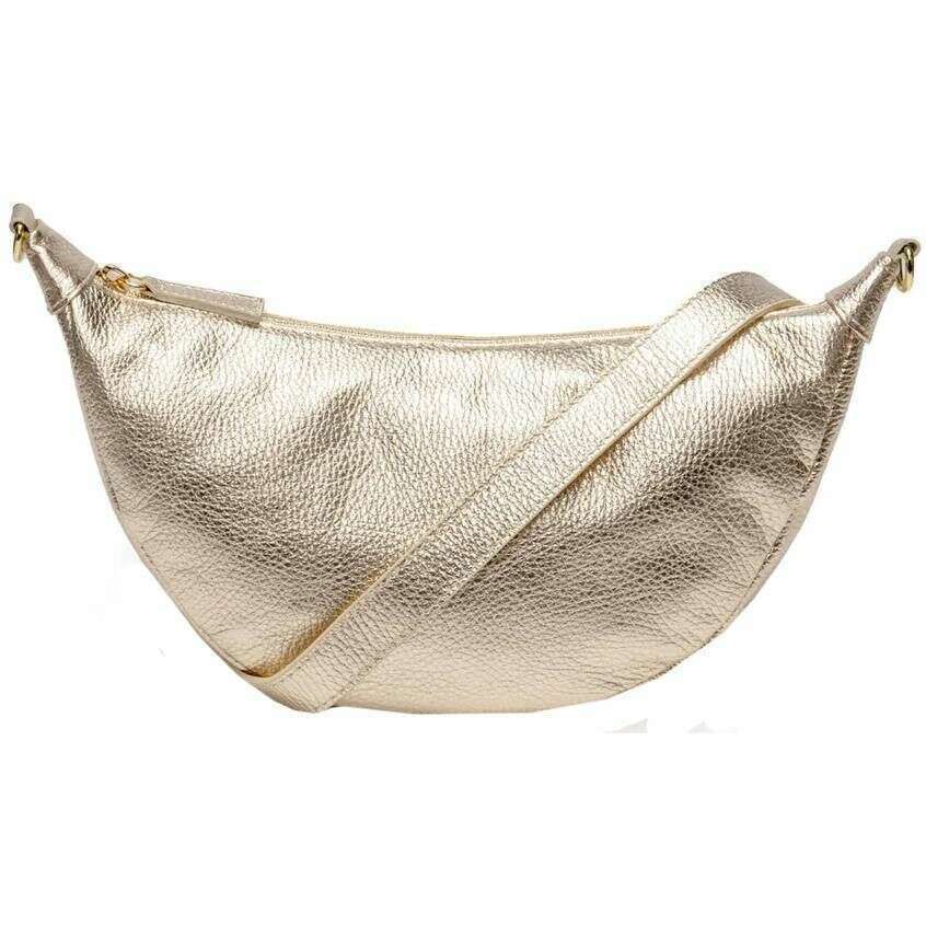 This hobo bag for women is fashioned by the brand Elie Beaumont in a gold colour and is made from 100% genuine premium leather. It measures 15cm(height) x 31cm(width) x 8cm(depth). All the bags come complete with elie beaumont packaging. The Elie Beaumont Hobo Bag - Gold is made to suit an everyday look to night attire with the versatile styling options. Featuring internal pockets for storage and organisation and a large main compartment to fit your essentials. Crafted from genuine premium leather gives a sleek and luxurious appeal whilst being durable and long lasting with its stitched side seams. Complete with gold hardware for sophistication.