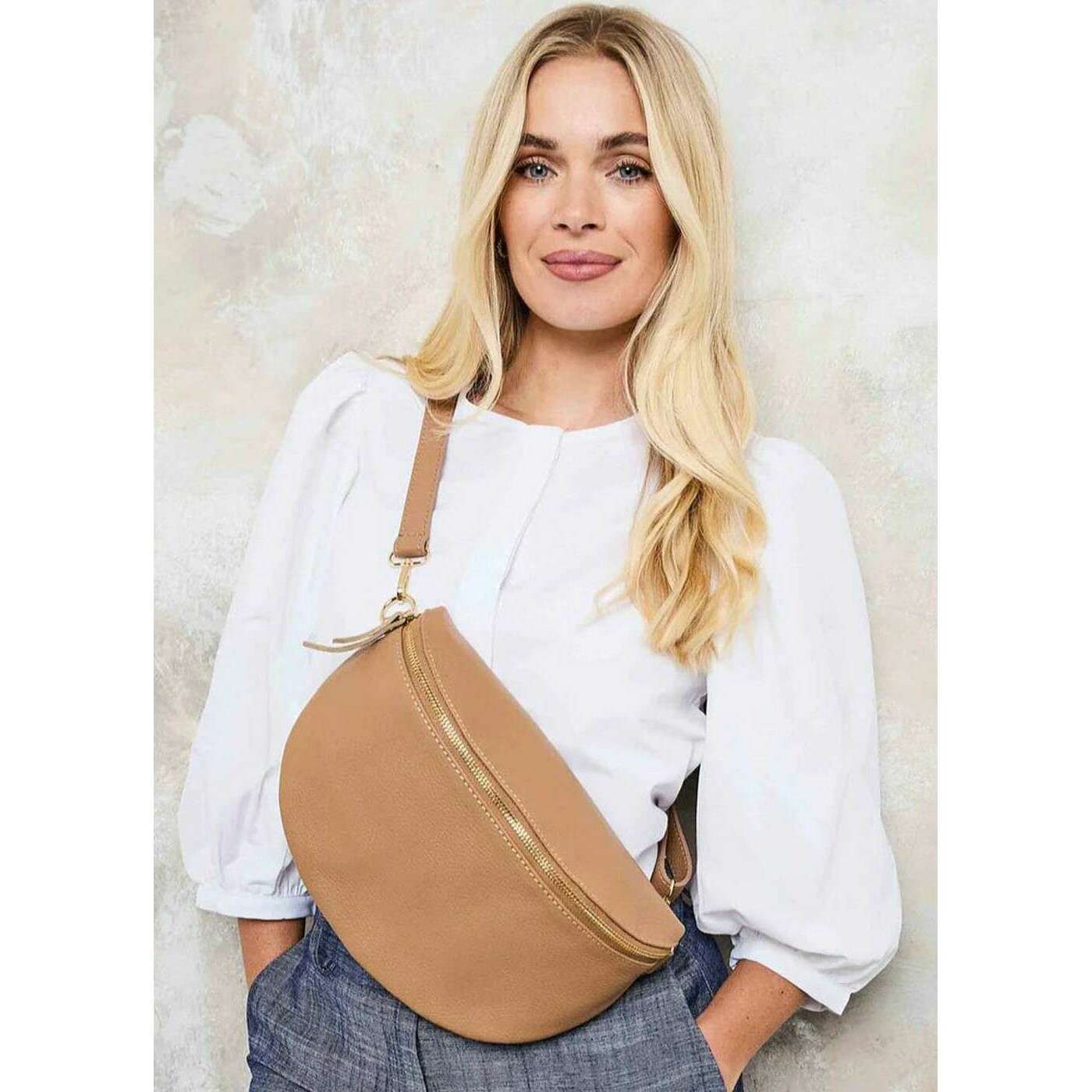 This large sling bag for women is fashioned by the brand Elie Beaumont in a tan colour and is made from 100% geniune leather. It measures 20cm(height) x 29cm(width) x 10cm(depth). Elie Beaumont have made this large sling bag in Italy. All the bags come complete with elie beaumont packaging. The Elie Beaumont Large Sling Bag - Camel Tan is designed for sophisticated everyday wear, this large sling bag combines elegance with effortless versatility. Its adjustable strap offers multiple styling options, allowing it to be worn crossbody or over the shoulder to suit any occasion. Thoughtfully designed with internal pockets for organisation, a spacious main compartment and an external zipped pocket, it keeps daily essentials neatly stored and easily accessible. Crafted from premium genuine leather, the bag boasts a sleek, luxurious finish while offering durability for long-lasting use. Finished with gold-tone hardware, it adds a touch of refined glamour to any outfit.