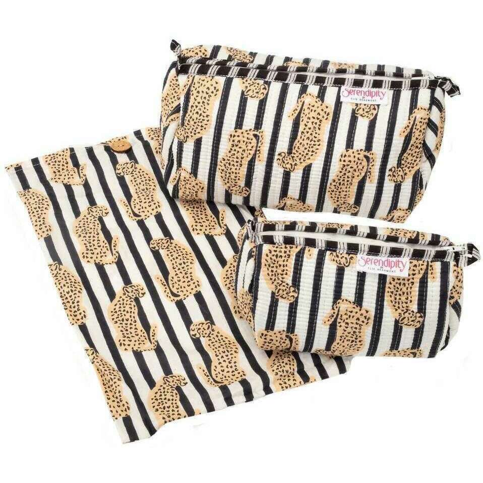 ({IF["Brought to you by the brand Elie Beaumont, this leopard black/white women's serendipity cosmetic case set is made from 100% natural cotton. It measures small - 13cm(height) x 20cm(width) x 10cm(depth) large - 16cm(height) x 25cm(width) x 13cm(depth). All the bags come complete with elie beaumont packaging. The Elie Beaumont Serendipity Cosmetic Case Set - Leopard Black/White are a must-have if you are looking to upgrade your makeup or toiletry bags to carry with you on your travels or to glamourise your room. Featuring a gorgeous design handcrafted with natural cotton that is better for you and the environment, four internal pockets in each for organisation, and a waterproof lining for an easy clean. These bags are lightweight and durable making them the perfect travel companion."!=""]})