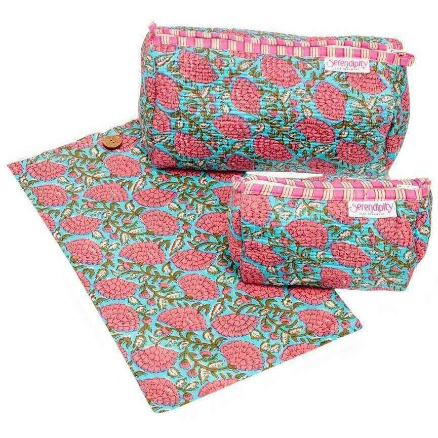 Elie Beaumont Serendipity Cosmetic Case Set - Peony Blue/Pink