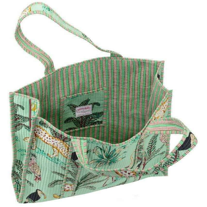Elie Beaumont Serendipity Cotton Quilted Tote Bag - Jungle Mint Green