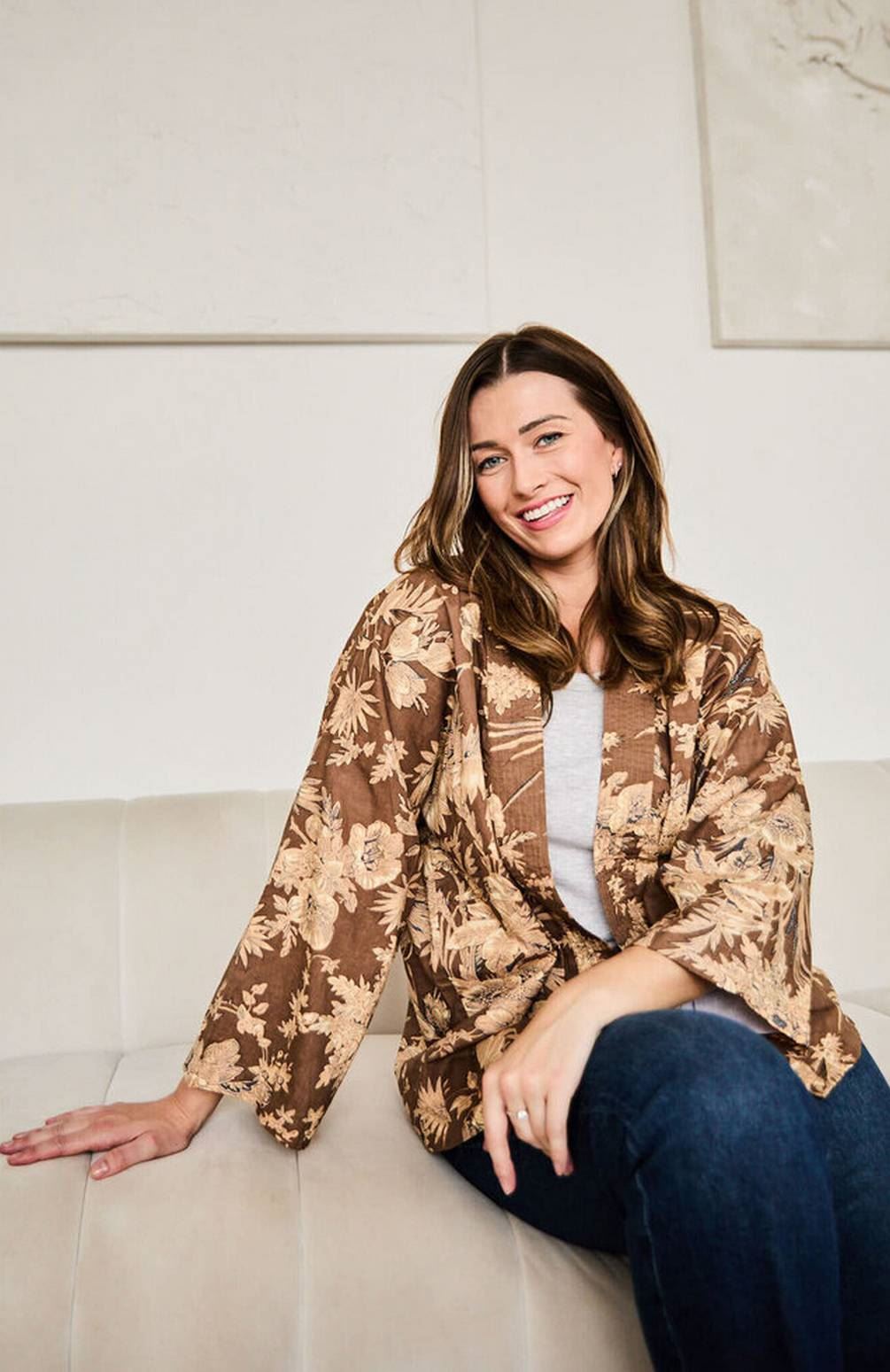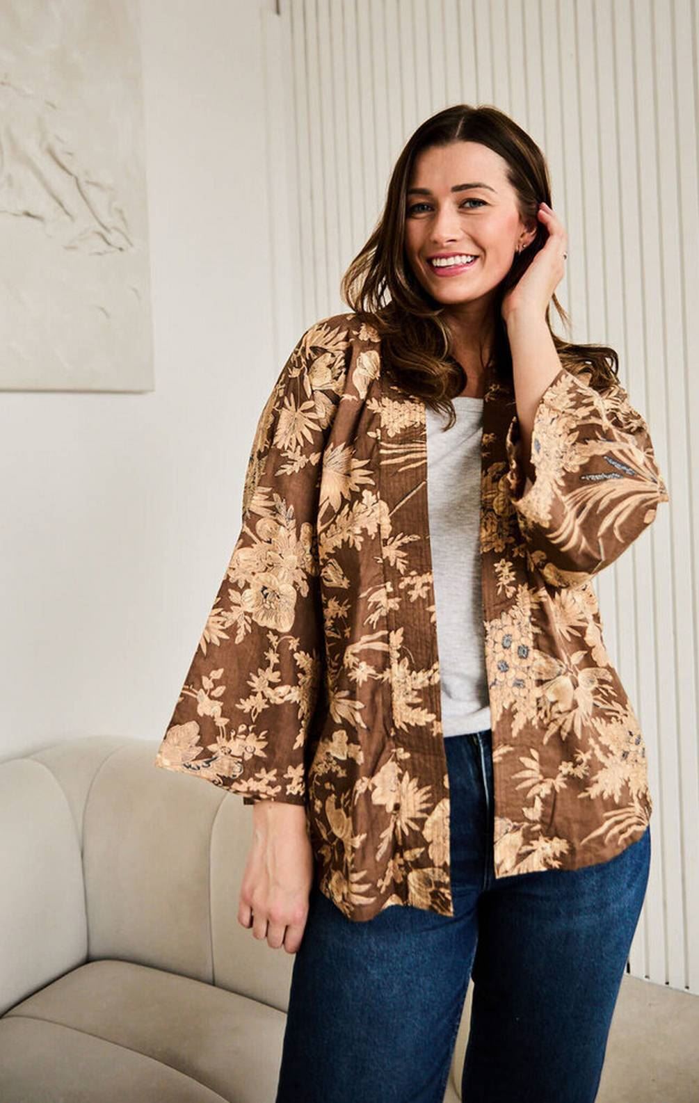 Elie Beaumont Serendipity Short Kimono - Coffee Blossom Brown