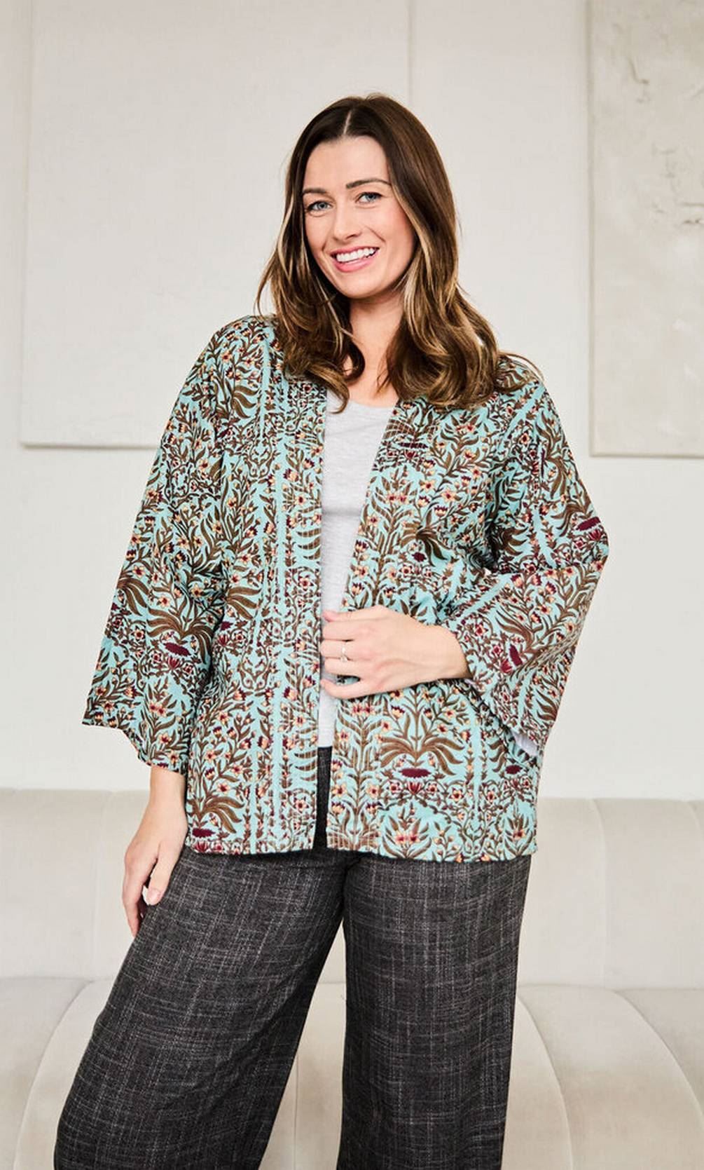 Using blue 100% natural cotton, this serendipity short kimono by Elie Beaumont is perfect for women and a must have. All the jackets come complete with elie beaumont packaging. The Elie Beaumont Serendipity Short Kimono - Light Blue Baroque will provide you with a real standout look that you are sure to love! The bold colours and the intricate design makes this kimono jacket really standout. This kimono is fully lined, breathable and has length sleeves.