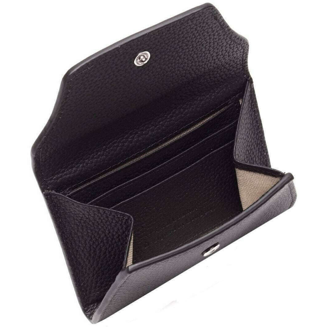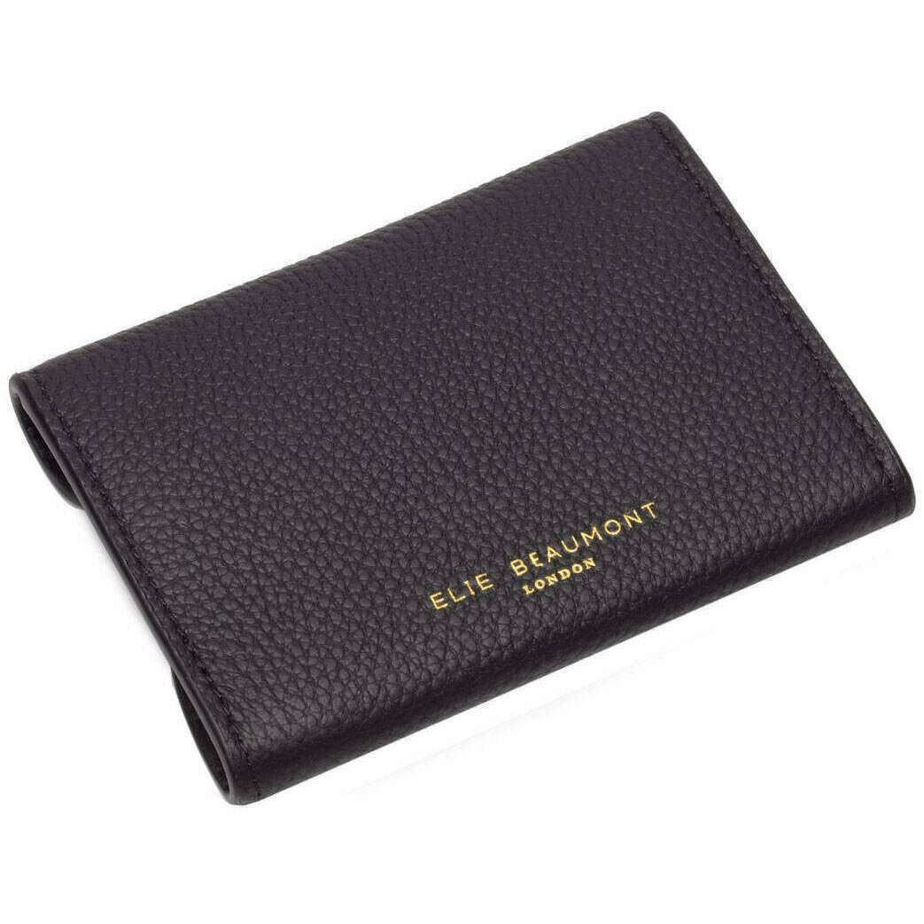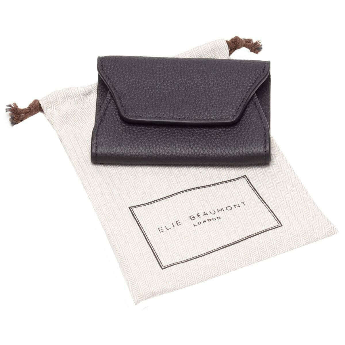 This well made women's wallet card holder from Elie Beaumont comes in a black colour and is manufactured from 100% genuine premium leather. It measures 9cm(height) x 12.5cm(width) x 1.5cm(depth). All the purses come complete with elie beaumont packaging. The Elie Beaumont Wallet Card Holder - Black chic and girly is a must-have to add to your bag to keep your cards and cash safe and in one place whilst making you look glamourous. The envelope design with a pop closure gives a unique and satisfying appeal whilst being able to hold up to 3 cards and room for cash, coins, further cards or other small belongings. Crafted from premium grained leather and beige fabric lining.