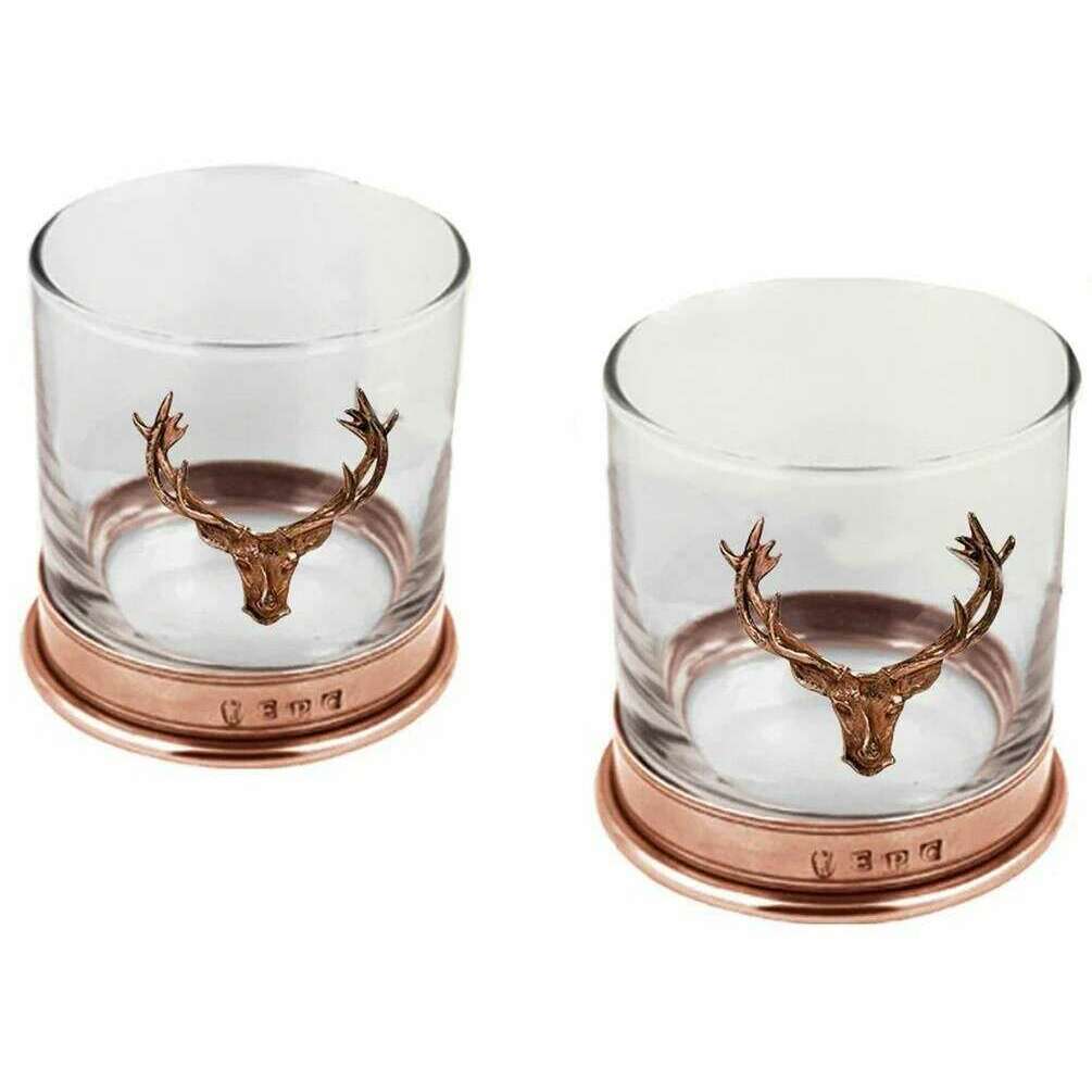 Perfect for men or women is this English Pewter Company clear/rose gold 11oz double copper stag tumbler set, it is also made from pewter, glass and copper. It measures 9cm(height). It is recommended to wipe clean to keep this drinkware and glassware in good condition. All the drinkware and glassware comes complete with english pewter company gift box. The English Pewter Company 11oz Double Copper Stag Tumbler Set - Clear/Rose Gold are a superb way to enjoy your favourite drink with their sleek design and timeless charm. The bases have a pewter banding which will not tarnish over time so you can keep it in the family for years to come. They will level up your hosting game, ensuring your guest are catered with premium glassware adding the perfect finishing touch to the occasion. Gift these to someone special.