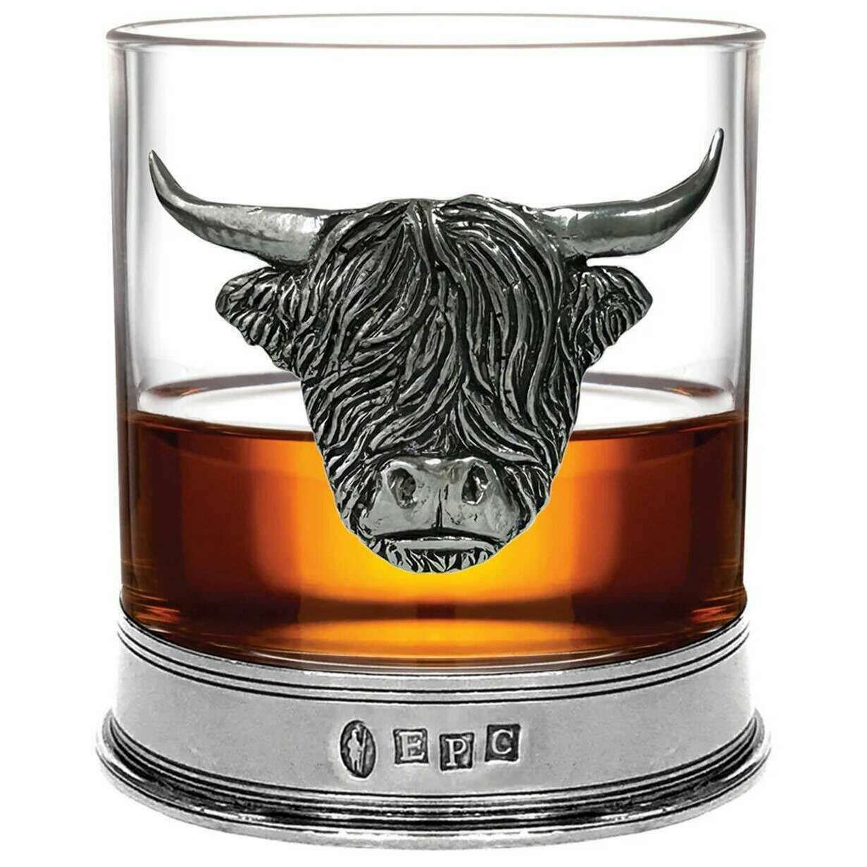 Perfect for men or women is this English Pewter Company silver/clear 11oz highland cow tumbler, it is also made from pewter and glass. It measures 9cm(height). English Pewter Company have made this 11oz highland cow tumbler in Britain. All the drinkware and glassware comes complete with english pewter company packaging. The English Pewter Company 11oz Highland Cow Tumbler - Silver/Clear is a superb way to enjoy your favourite drink with its sleek design and timeless charm. The base has a pewter banding which will not tarnish over time so you can keep it in the family for years to come. It also adorns a gorgeous pewter badge adding the perfect finishing touch. This would make a thoughtful gift.