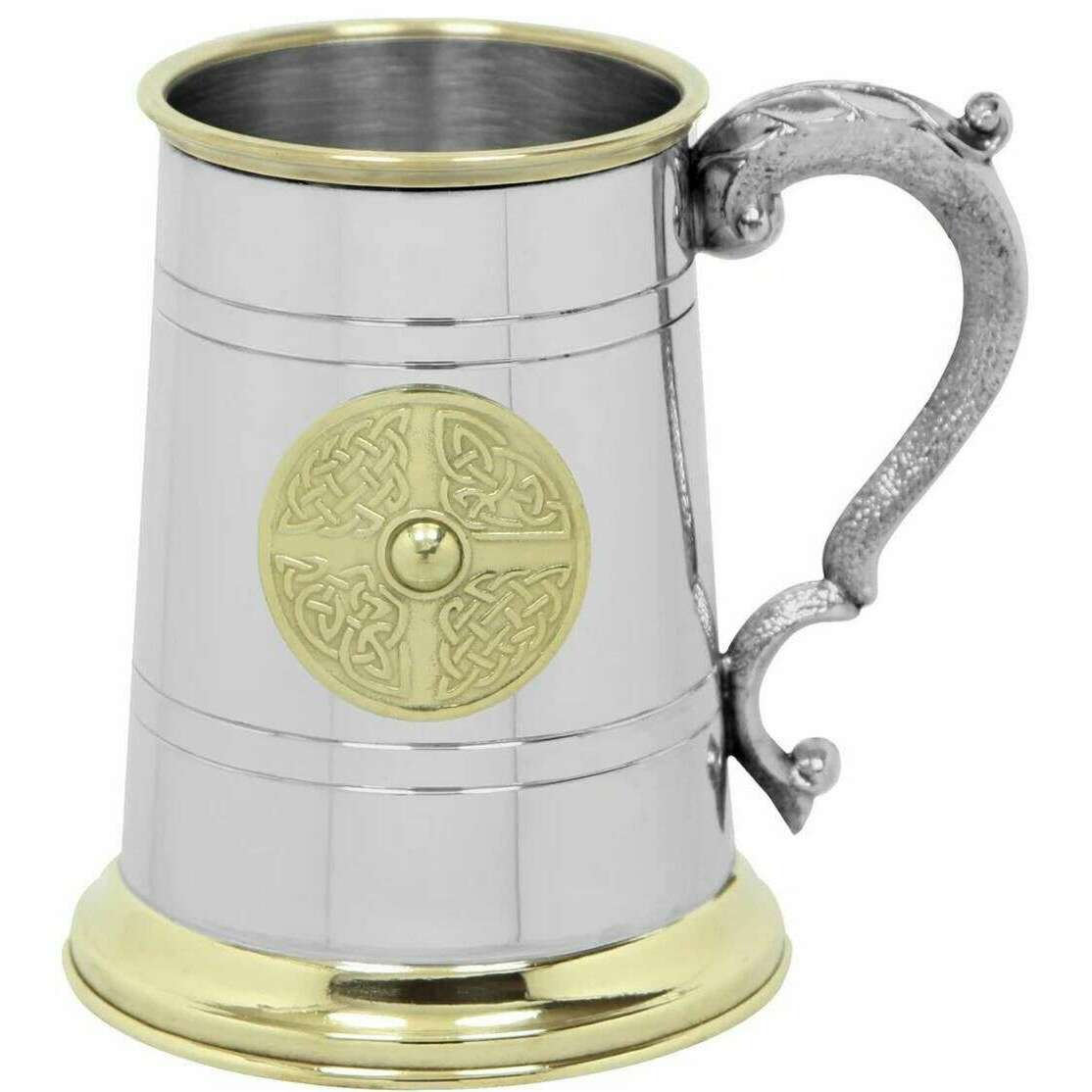 English Pewter Company 1pt Brass Badge Tankard - Silver/Gold