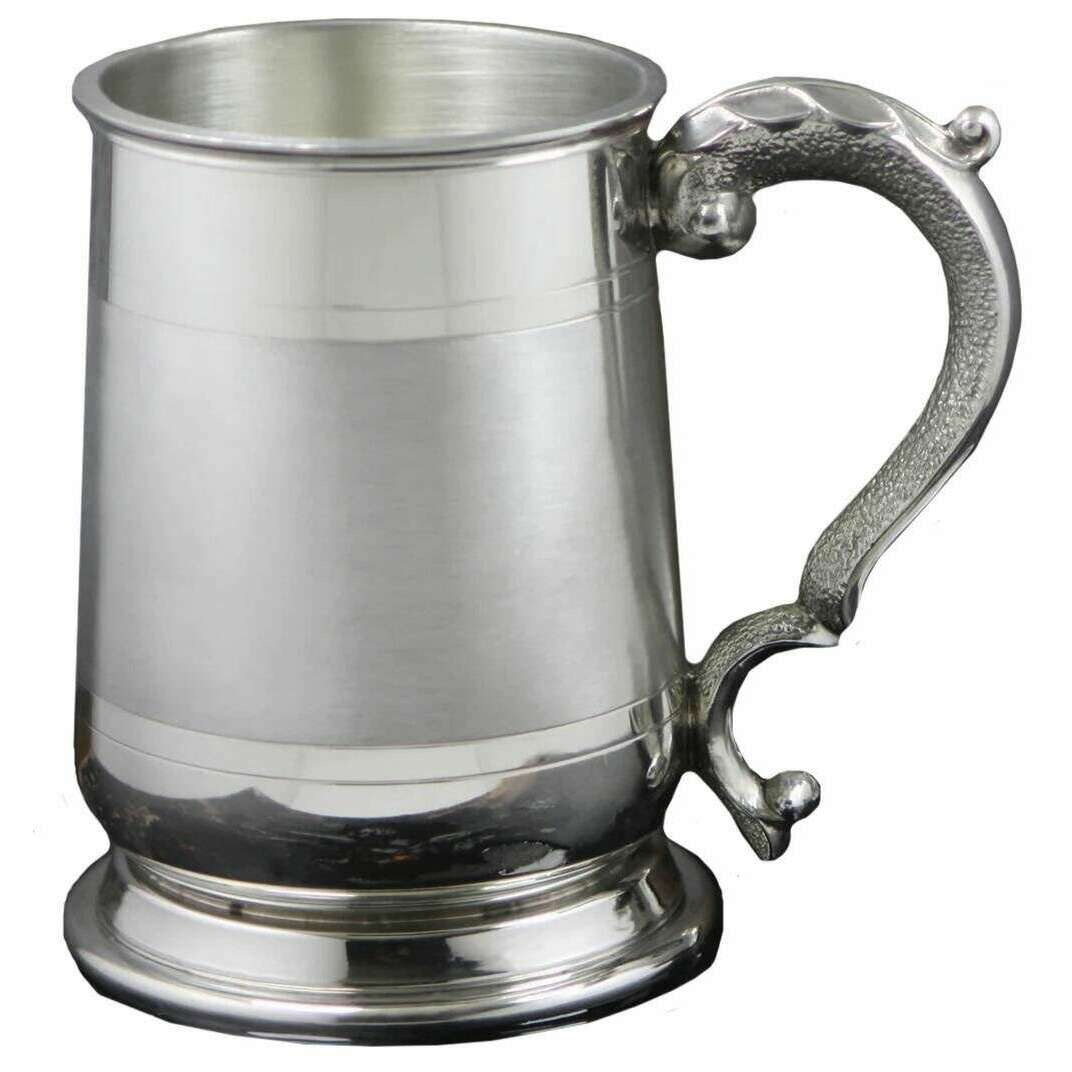 Using silver pewter, this 1pt cavalier satin band tankard by English Pewter Company is perfect for men or women and a must have. It measures 12.75cm(height). All the drinkware and glassware comes complete in a english pewter company gift box. The English Pewter Company 1pt Cavalier Satin Band Tankard - Silver is a simplistic piece with a detailed handle giving it all-round great appeal. Beautifully hand made to an exceptional quality with materials that will not tarnish over time, this tankard can be enjoyed on many occasions. This piece is the perfect way to honour traditions so whether you give it as a gift or enjoy it for yourself it needs to be added to your collection.