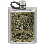 English Pewter Company 6oz Embossed Thistle Pewter Flask - Silver/Brass Gold