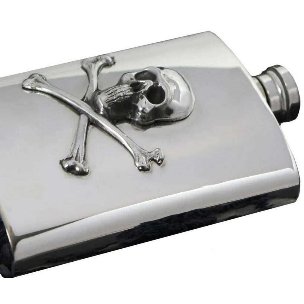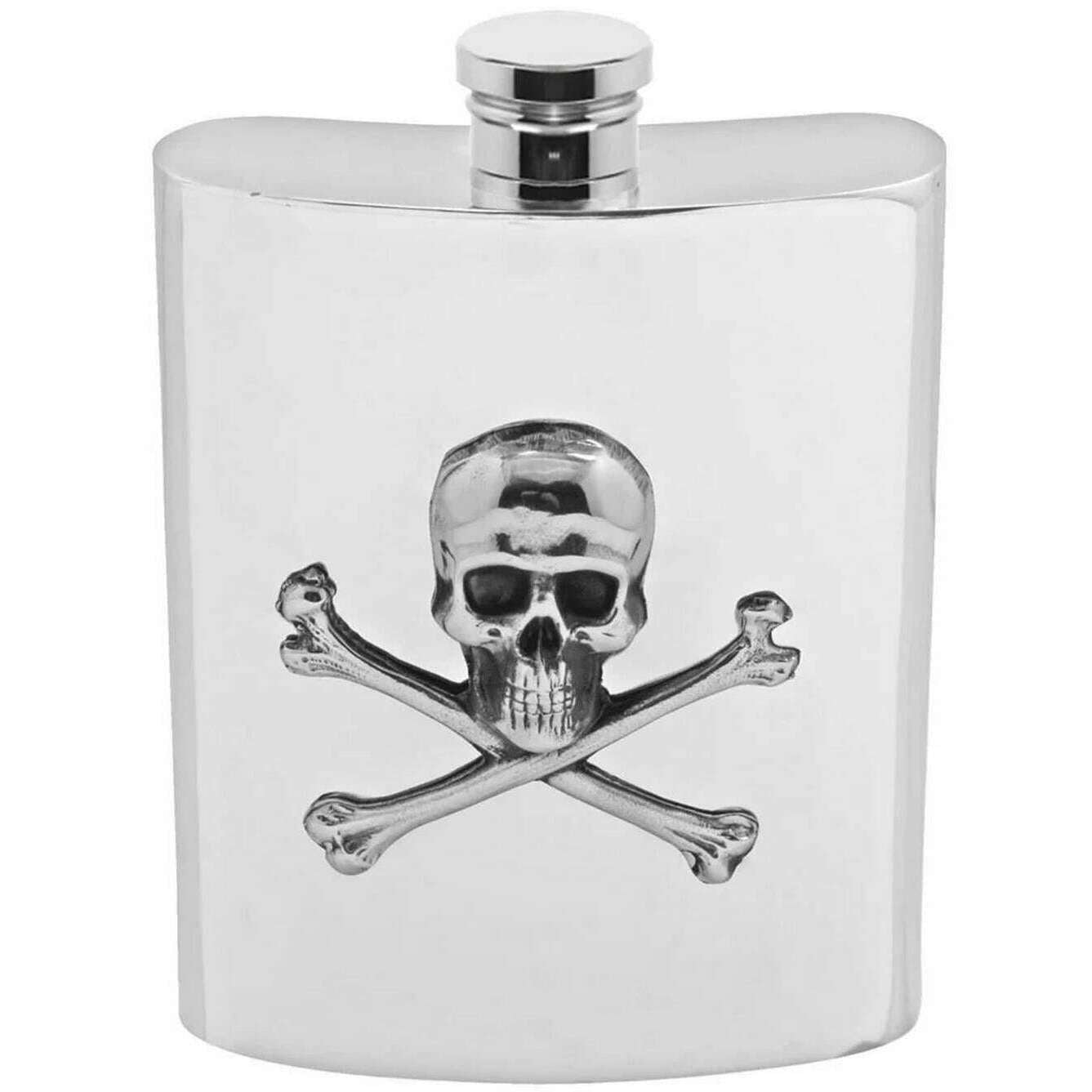 This unisex 6oz poison hip flask by the brand English Pewter Company is made from pewter and is showcased in silver. It measures 12cm(height). It is recommended to wipe clean to keep this hip flask in good condition. All the hip flasks come complete with english pewter company gift box. The English Pewter Company 6oz Poison Hip Flask - Silver really emphasises the phrase pick your poison with its skull and crossbones badge. With a screw top fastening, spillages will be always prevented. Its flawless polished design makes this an absolute must have for someone to own. Guaranteed not to disappoint.