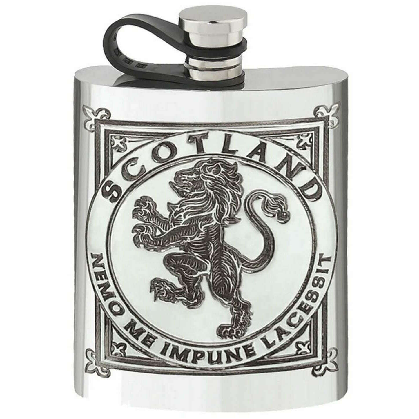 English Pewter Company 6oz Rampant Lion Flexi Cap Hip Flask - Silver