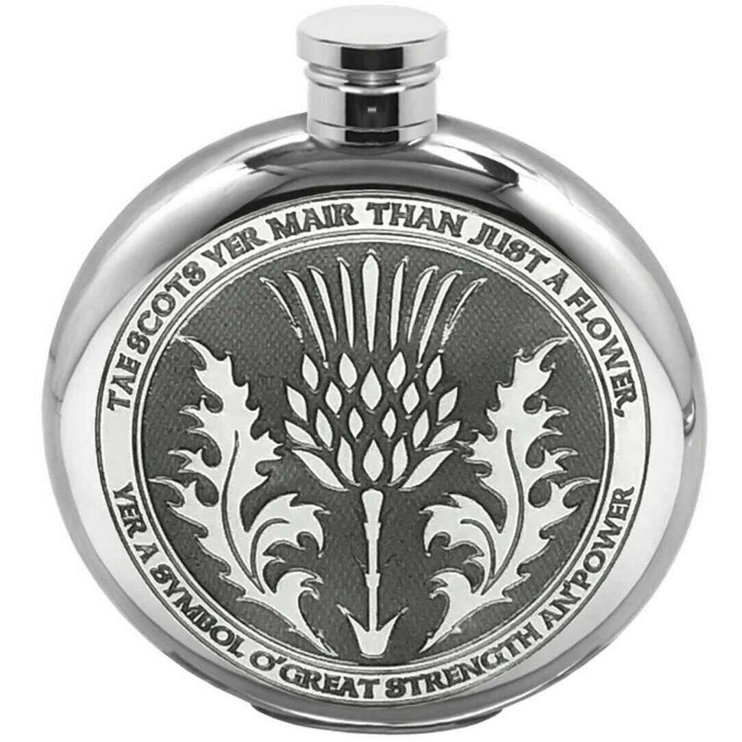 English Pewter Company 6oz Tae A Thistle Round Flask - Silver