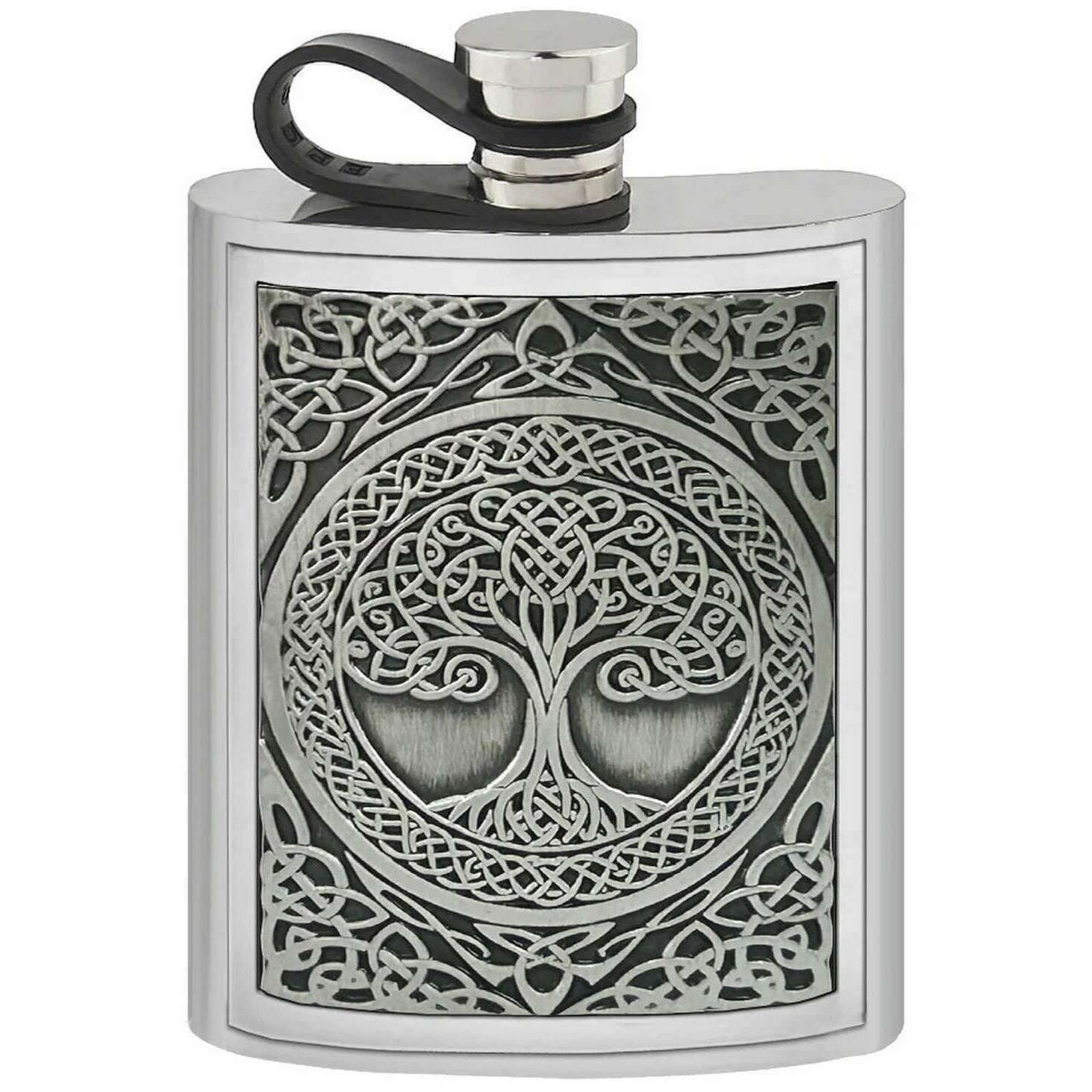 English Pewter Company 6oz Tree Of Life Hip Flask - Silver