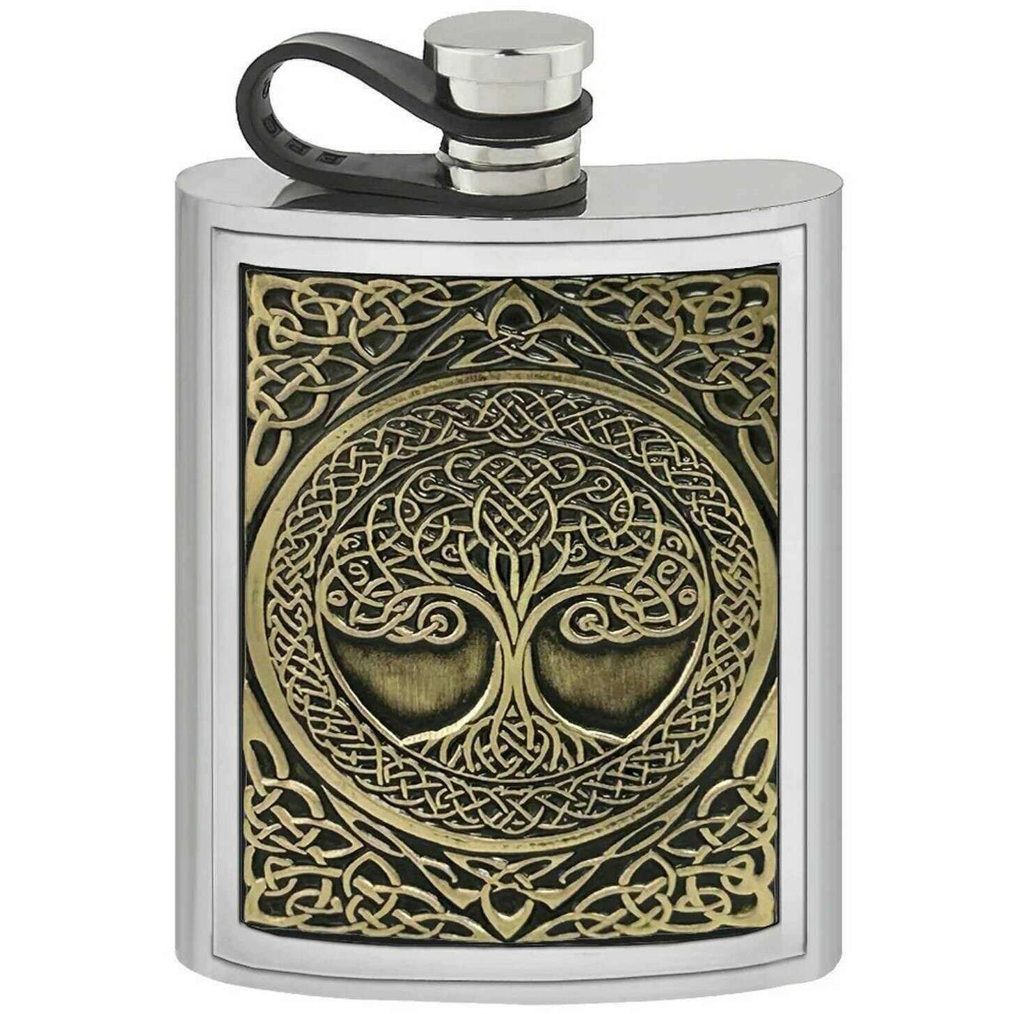 English Pewter Company 6oz Tree Of Life Hip Flask - Silver/Brass Gold