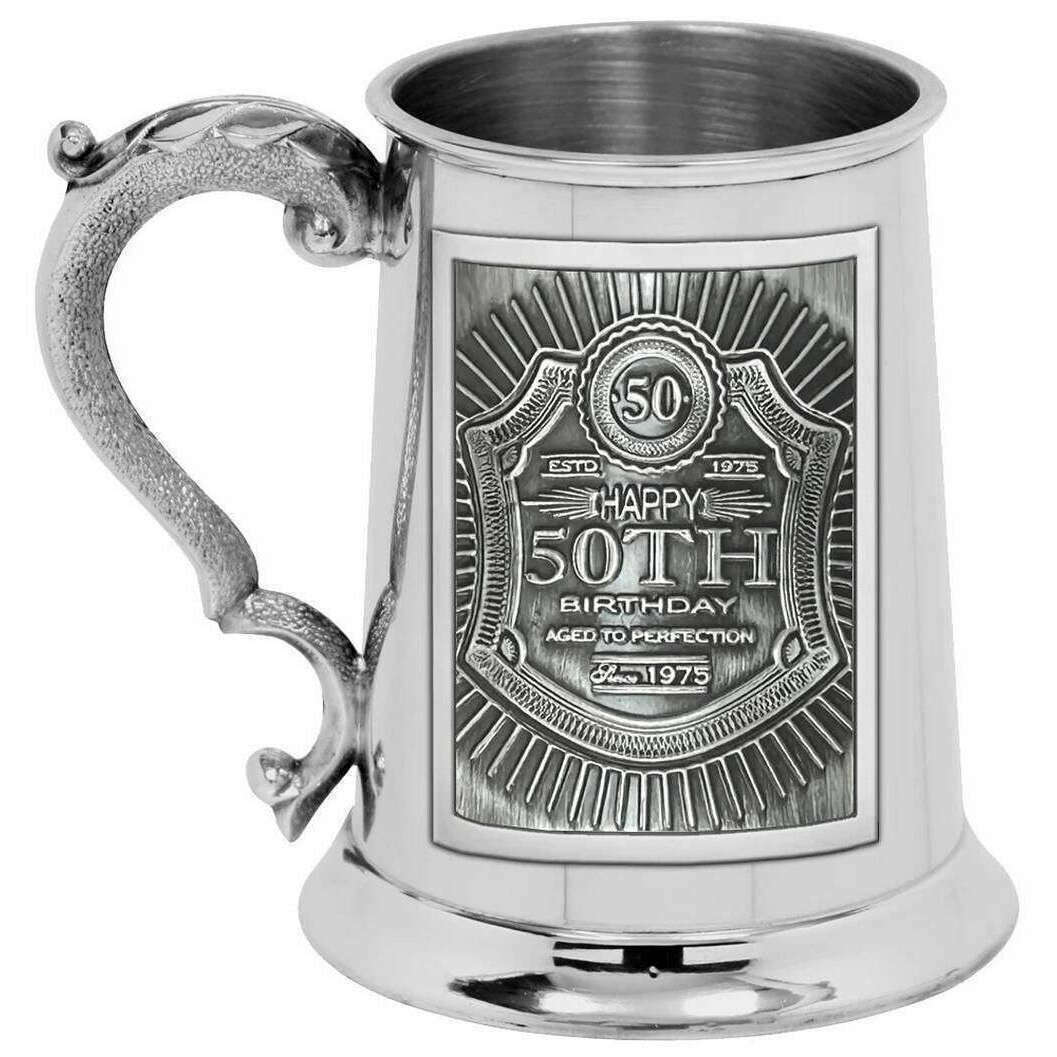 This well made unisex embossed 50th pewter 1 pint tankard from English Pewter Company comes in a silver colour and is manufactured from pewter. It measures 12.75cm(height). English Pewter Company have made this embossed 50th pewter 1 pint tankard in Britain. All the drinkware and glassware comes complete with english pewter company packaging. The English Pewter Company Embossed 50th Pewter 1 Pint Tankard - Silver will make the perfect gift for that special birthday. It features a sturdy handle with an intricate design and offer classic appeal with its weighty finish. Fill it up with your favourite ale or craft beer and raise a toast for the special occasion. The high quality material ensures it gives off timeless charm.