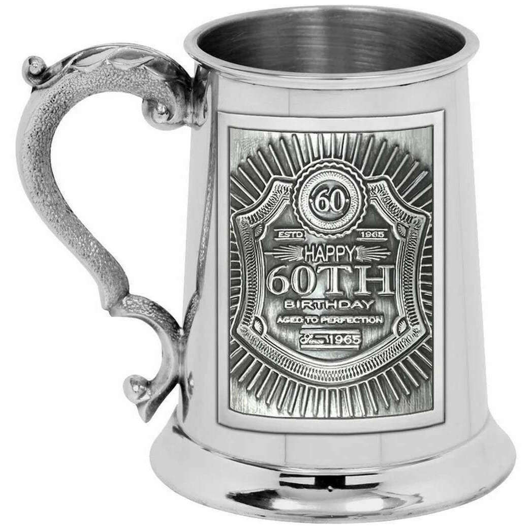 Using silver pewter, this embossed 60th pewter 1 pint tankard by English Pewter Company is perfect for men or women and a must have. It measures 12.75cm(height). English Pewter Company have made this embossed 60th pewter 1 pint tankard in Britain. All the drinkware and glassware comes complete with english pewter company packaging. The English Pewter Company Embossed 60th Pewter 1 Pint Tankard - Silver will make the perfect gift for that special birthday. It features a sturdy handle with an intricate design and offer classic appeal with its weighty finish. Fill it up with your favourite ale or craft beer and raise a toast for the special occasion. The high quality material ensures it gives off timeless charm.