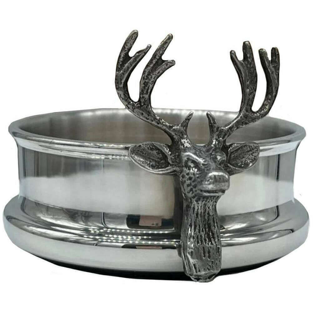 English Pewter Company Stag Head Wine Bottle Coaster - Silver/Brown