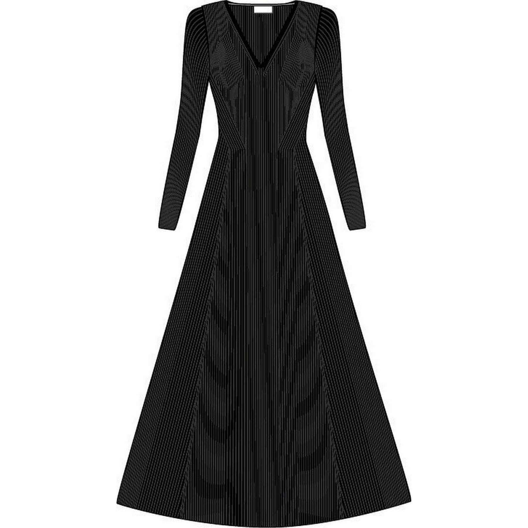 • Midi Length , Stretchy Ribbed Fabric , Wide A-Line Skirt , Freedom of Movement , Flowing Fit , French Shoulders , Lurex Yarn