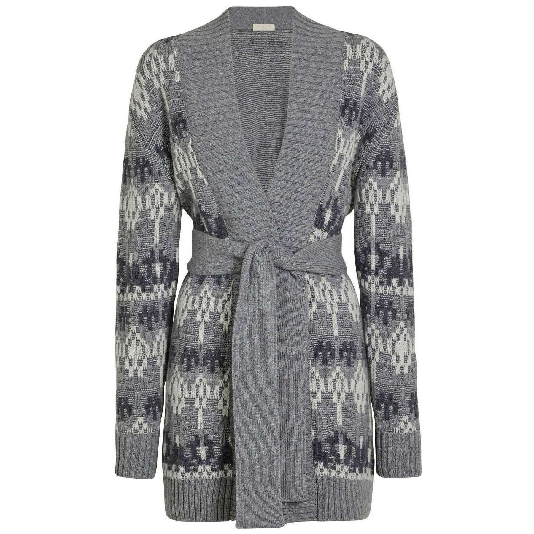 This jacquard long cardigan for women is fashioned by the brand Falke in a grey colour and is made from 80% recycled virgin wool and 20% polyamide. Also the grey mel jumper is designed in a unique pattern, It is recommended to machine wash at 30 degrees to keep this jumper in good condition. All the jumpers come complete with falke packaging. The Falke Jacquard Long Cardigan - Grey Mel is the perfect piece to add tradition whilst giving you exceptional warmth with the thick lambswool. This timeless cardi is a great layering piece on those colder days with its tie belt. Crafted with 100% mulesing-free wool for sheep welfare with a high-quality 'fully fashioned' processing gives a exclusive feel and fashionable look that will be enjoyed for many years. If you are looking to elevate your winter style this ideal for you!