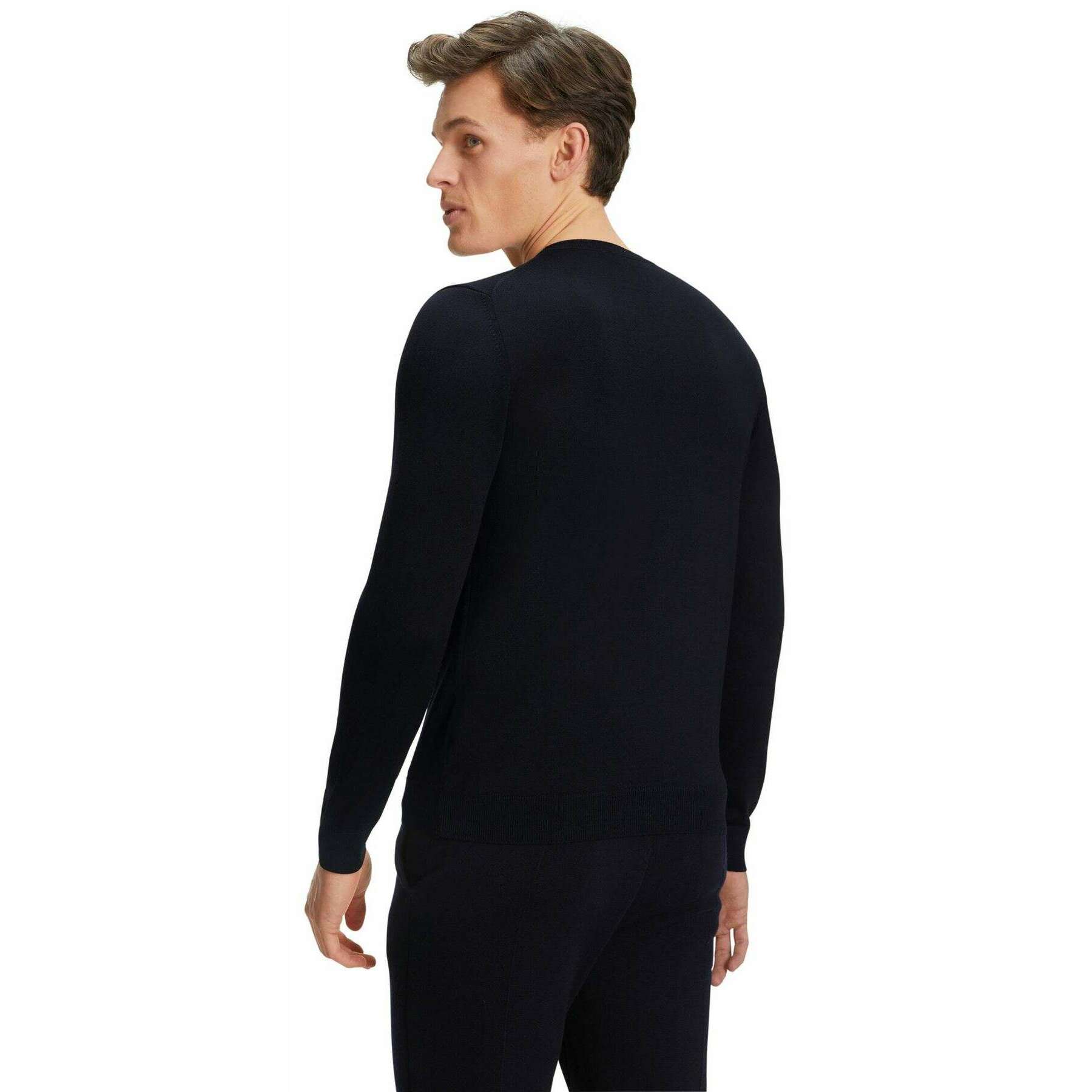 Manufactured from 100% virgin wool is this night sky navy men's merino x-fine crew neck sweater by the designer Falke. Also the night sky navy jumper is designed in a plain pattern, It is recommended to machine wash at 30 degrees to keep this jumper in good condition. All the jumpers come complete with falke packaging. The Falke Merino X-Fine Crew Neck Sweater - Night Sky Navy is a must-have piece to elevate your winter wardrobe with the classic design to give that traditional touch. Crafted from mulesing-free merino wool gives a light wear perfect for mild to cold outdoor temperatures keeping you warm in the autumn and winter. Giving this sweater its fashionable look is the French shoulder seams, fine ribbed neckline and elasticated ribbed cuffs on the trunk and sleeves. The high-quality 'fully fashioned' processing gives an exclusive feel that will be enjoyed and will stay this way for many years to come.