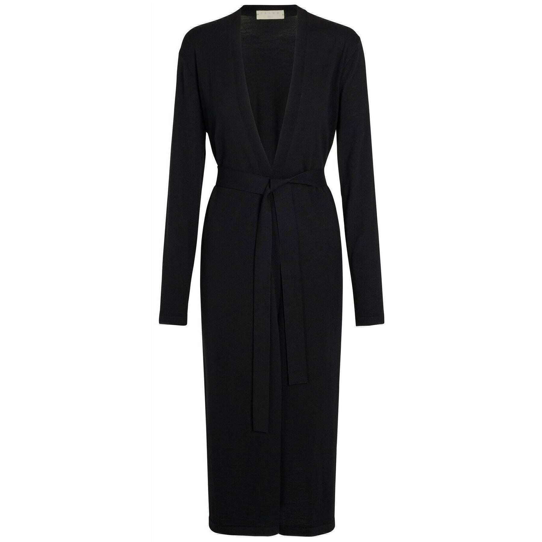 This women's merino x-fine long cardigan by the brand Falke is made from 100% virgin wool and is showcased in black. Also the black jumper is designed in a plain pattern, It is recommended to machine wash at 30 degrees to keep this jumper in good condition. All the jumpers come complete with falke packaging. The Falke Merino X-Fine Long Cardigan - Black can be worn both casually and formally with the change just of the outfit underneath. Crafted with high-quality merino wool ensures optimal climate control whilst being breathable for the perfect wear in any season. The tie belt extenuates your beautiful silhouette whilst changing the look and keeping you warm. This cardi is made with 100% mulesing-free wool for sheep welfare meaning the extraction of the wool was gentle and pain-free.