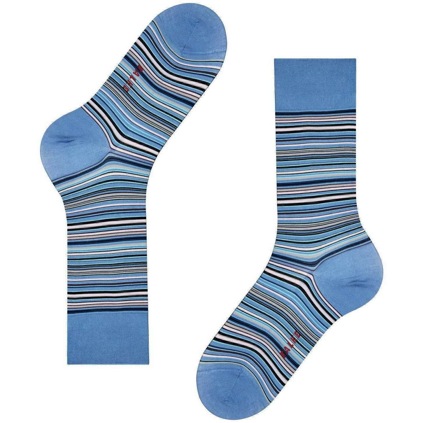 These men's microblock socks by the brand Falke are made from 91% cotton, 6% polyamide and 3% elastane and are showcased in blue. Also the water blue socks are designed in a striped pattern, It is recommended to machine wash at 40 degrees celsius to keep these socks in good condition. All the socks come complete with falke sock tags. The Falke Microblock Socks - Water Blue feature a multi-coloured stripe pattern for a fashionable, elegant look for those classy occasions. With reinforced stress zones, these socks give you long lasting durable wear and Falke Perfect Fit. Thanks to the high-quality Fil d' cosse cotton, these sophisticated socks boast a fine mesh quality that looks and feels great against your skin.