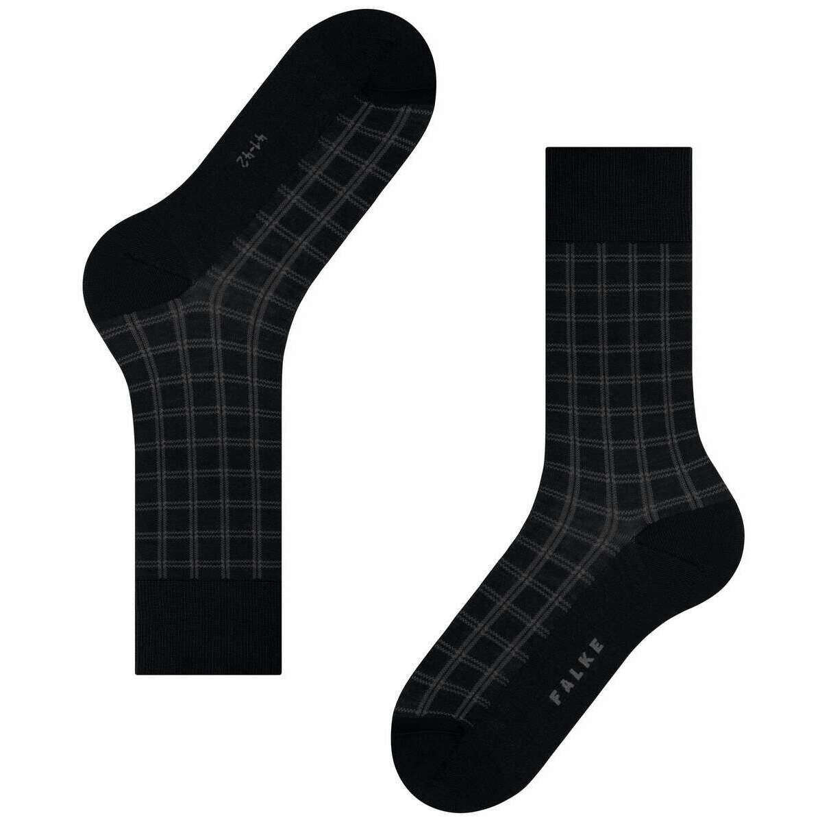 Designer Falke have brought you these men's 89% cotton (32% organic), 9% polyamide and 2% elastane socks using black tones. Also the black socks are designed in a checked pattern, It is recommended to wash at 40 degrees to keep these socks in good condition. All the socks come complete with falke sock tags. The Falke Modern Tailor Socks - Black embody a blend of timeless craftsmanship and contemporary check design. Crafted from carefully selected Falke We Care Cotton, these socks ensure comfort and style. With reinforced stress zones to enhance durability, you get a perfect Falke fit with each wear. Whether for everyday wear or special occasions, these socks are a testament to FALKE's commitment to quality and innovation in men's hosiery.