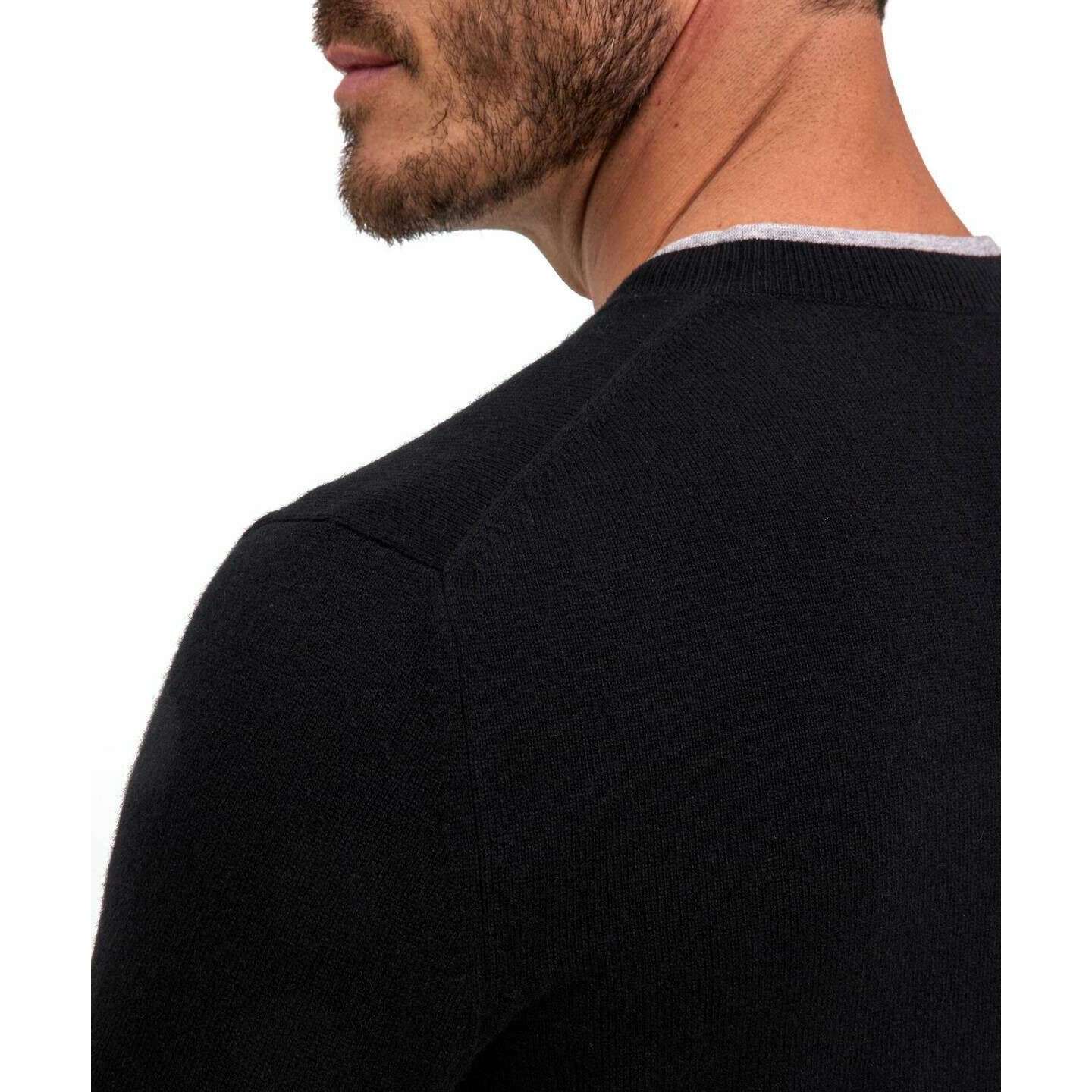 This well made men's pure cashmere v-neck sweater from Falke comes in a black colour and is manufactured from 100% cashmere. Also the black jumper is designed in a plain pattern, It is recommended to machine wash at 30 degrees to keep this jumper in good condition. All the jumpers come complete with falke packaging. The Falke Pure Cashmere V-Neck Sweater - Black emits luxury and sophistication for an everyday wear that will make the perfect addition to your wardrobe. Crafted from cashmere offers a super-soft touch, warmth and a breathable finish perfect for a year-round piece. The classic yet simple design allows this sweater to be styled in endless ways making it timeless and versatile. The regular fit, V-neck, ribbed cuffs and hems and French shoulders combine for a completed look. Its fully fashioned workmanship guarantees a precise fit and durability, to enjoy for years to come.