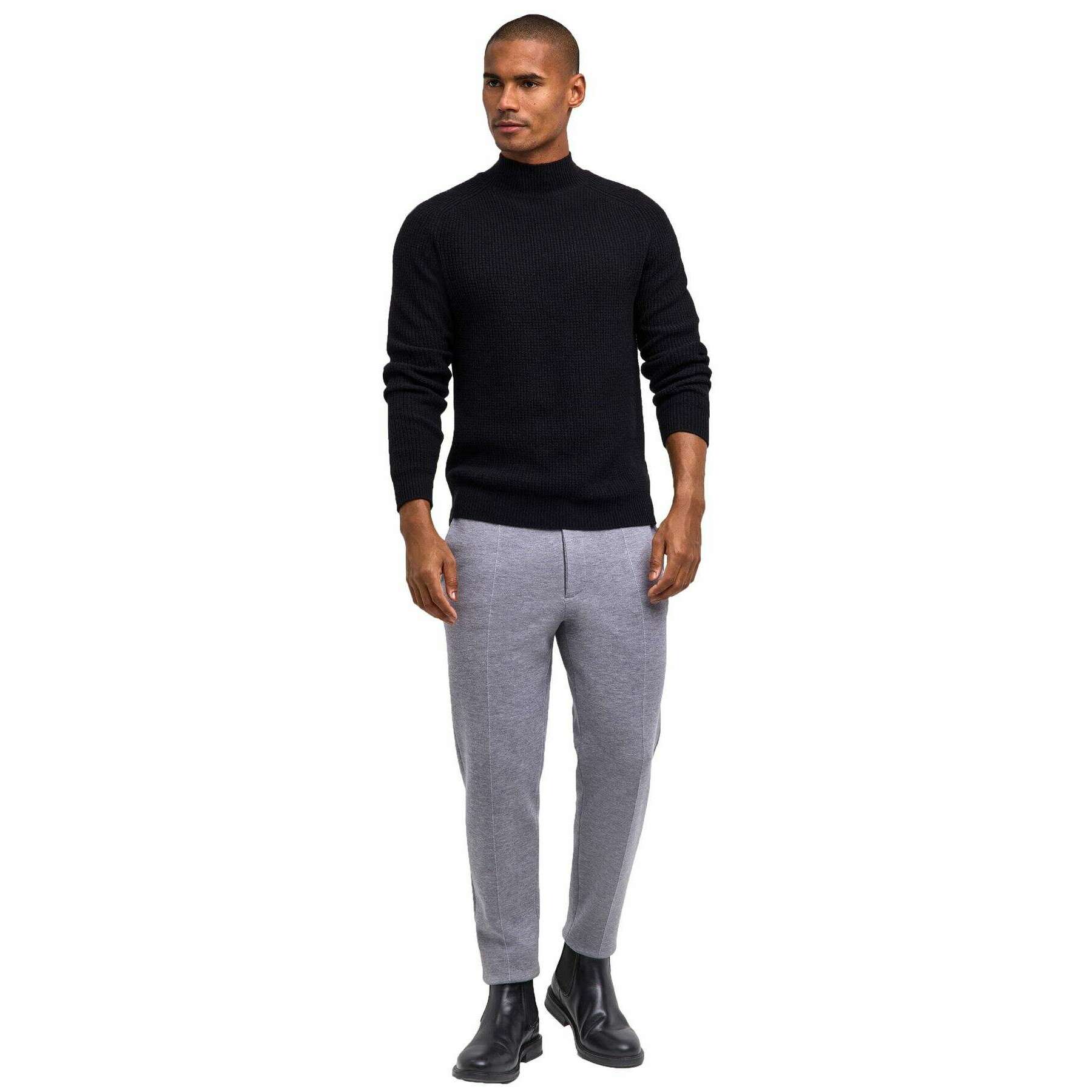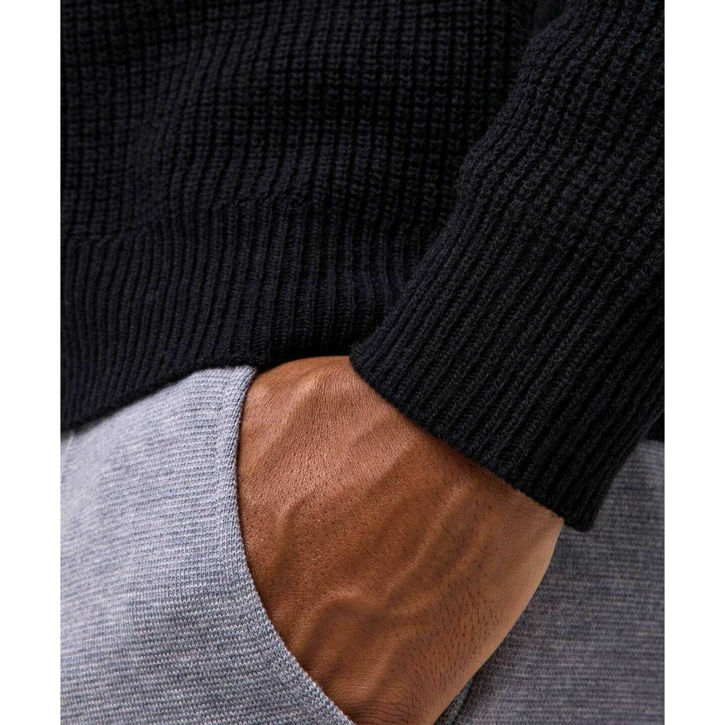 Introducing this men's ribbed lambswool mock neck sweater by Falke, it is manufactured from 80% virgin wool and 20% recycled polyamide in a black colour. Also the black jumper is designed in a plain pattern, It is recommended to machine wash at 30 degrees to keep this jumper in good condition. All the jumpers come complete with falke packaging. The Falke Ribbed Lambswool Mock Neck Sweater - Black will elevate your winter wardrobe becoming a timeless essential. Its classic design adds a traditional touch, while the luxurious lambswool construction offers a soft and snug feel, perfect for braving chilly autumn and winter days. Stylish saddle shoulders, a mock collar and ribbed cuffs and hems create a refined silhouette, while the premium environmentally conscious fully fashioned craftsmanship ensures lasting quality and comfort for years to come.