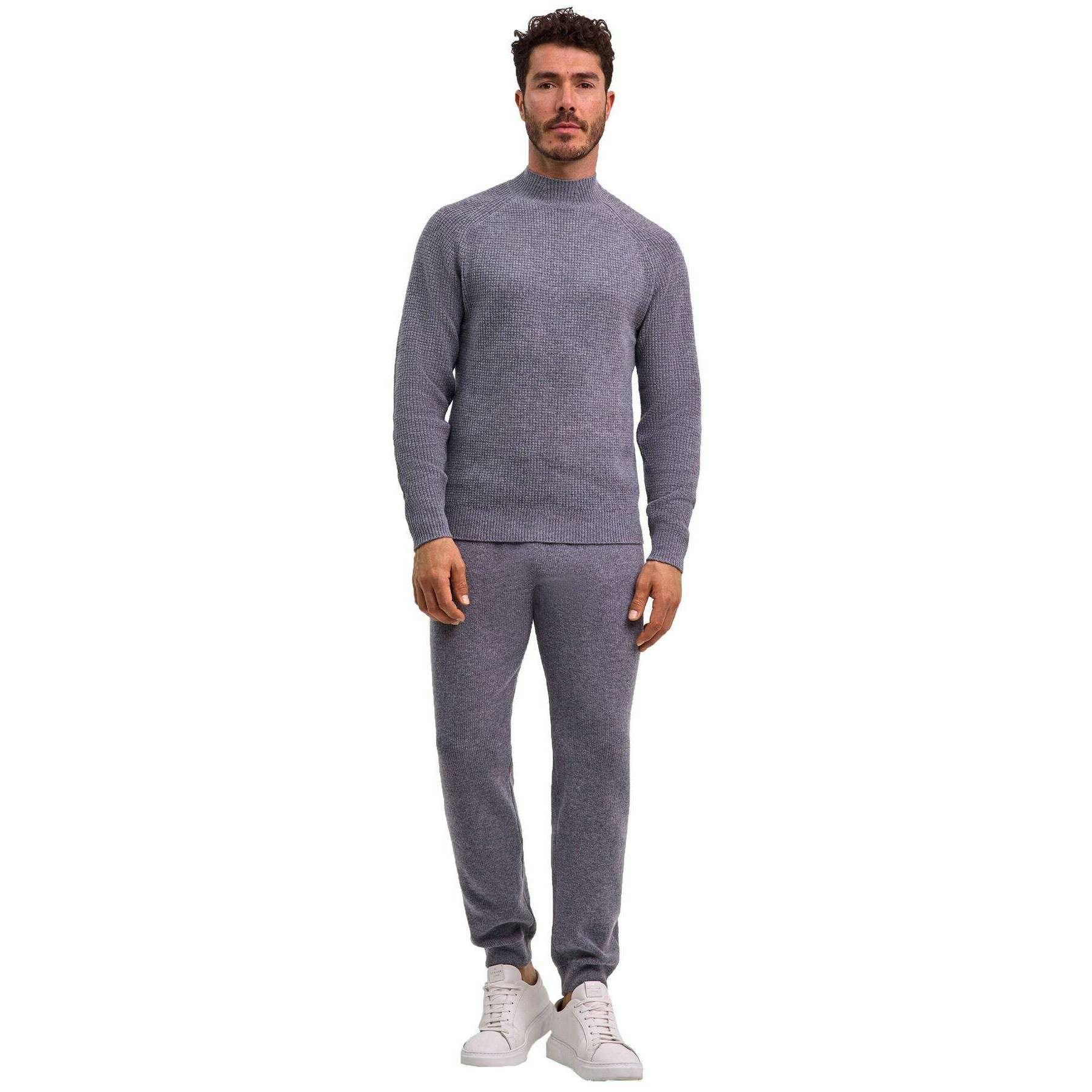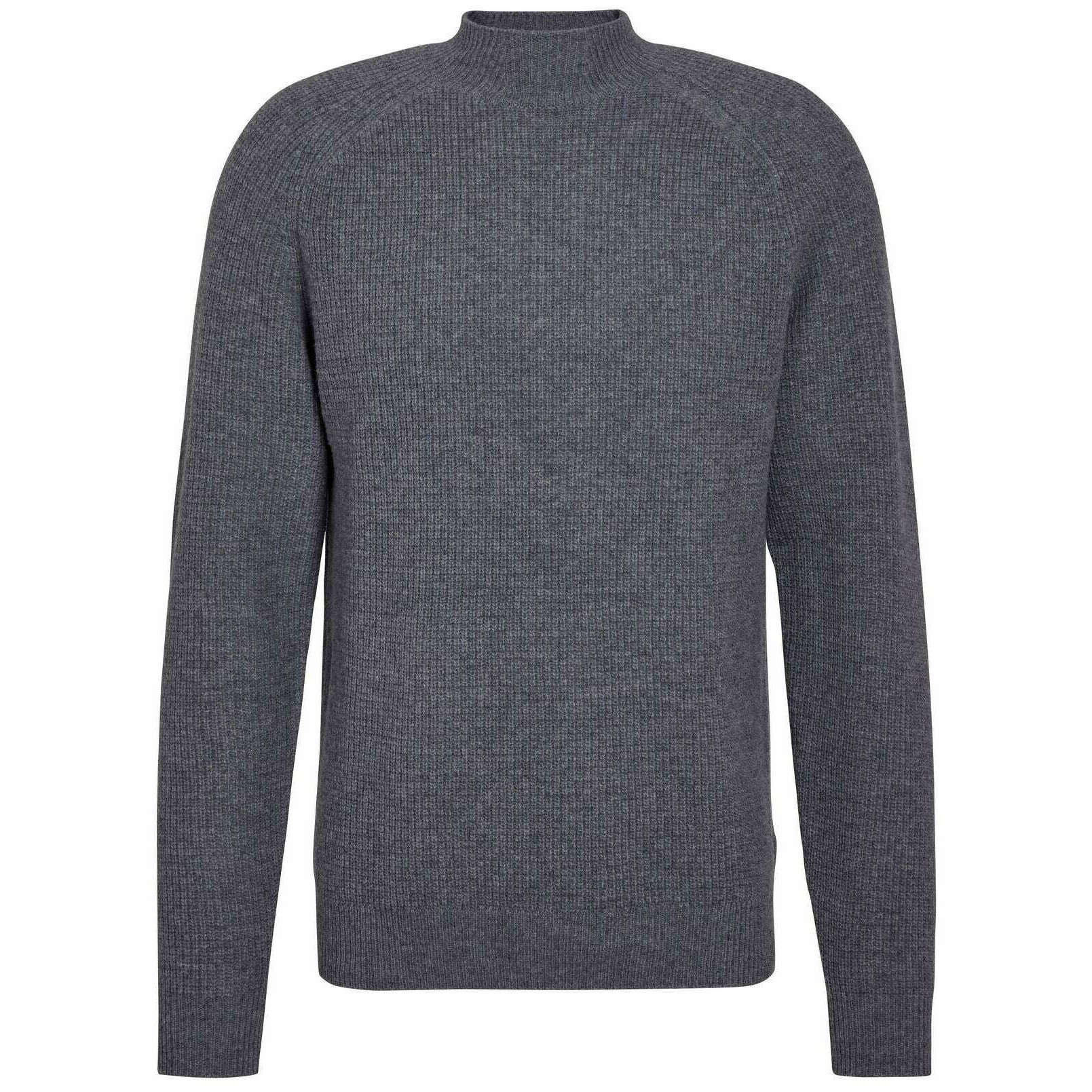Falke Ribbed Lambswool Mock Neck Sweater - Grey Mel