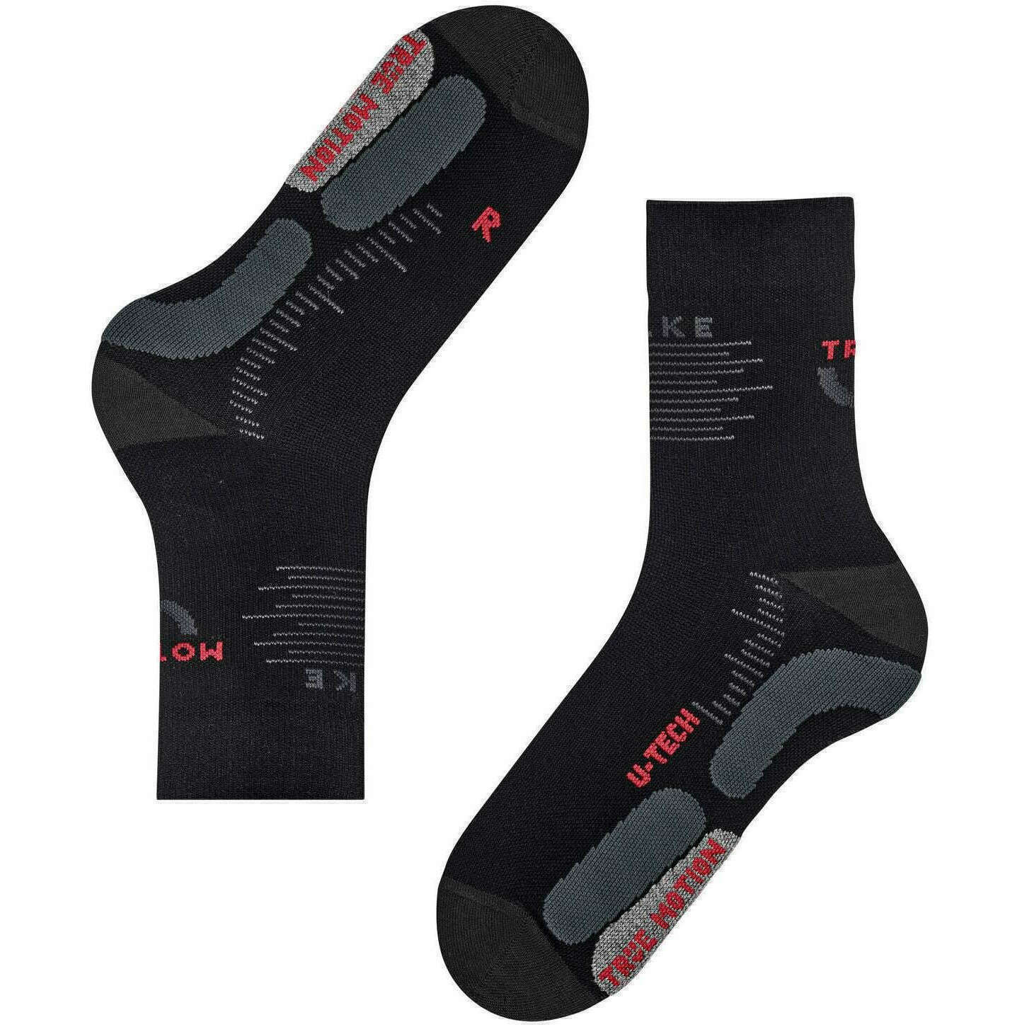 These women's ru true motion running socks by the brand Falke are made from 39% polyamide, 34% lyocell, 15% polyester, 10% polypropylene and 2% elastane and are showcased in black. Also the black socks are designed in a plain pattern, It is recommended to wash at 40 degrees to keep these socks in good condition. All the socks come complete with falke sock tags. The Falke RU True Motion Running Socks - Black were developed in collaboration with True Motion to significantly improve stability and comfort. With fibre mix containing Lyocell, these running socks have quick drying wicking 3-layer construction to keep your feet dry and blister free. The U-Tech cushion in the heel area centres the heel thus reducing the pressure on the knees. These running socks are specifically adapted to narrower female feet.