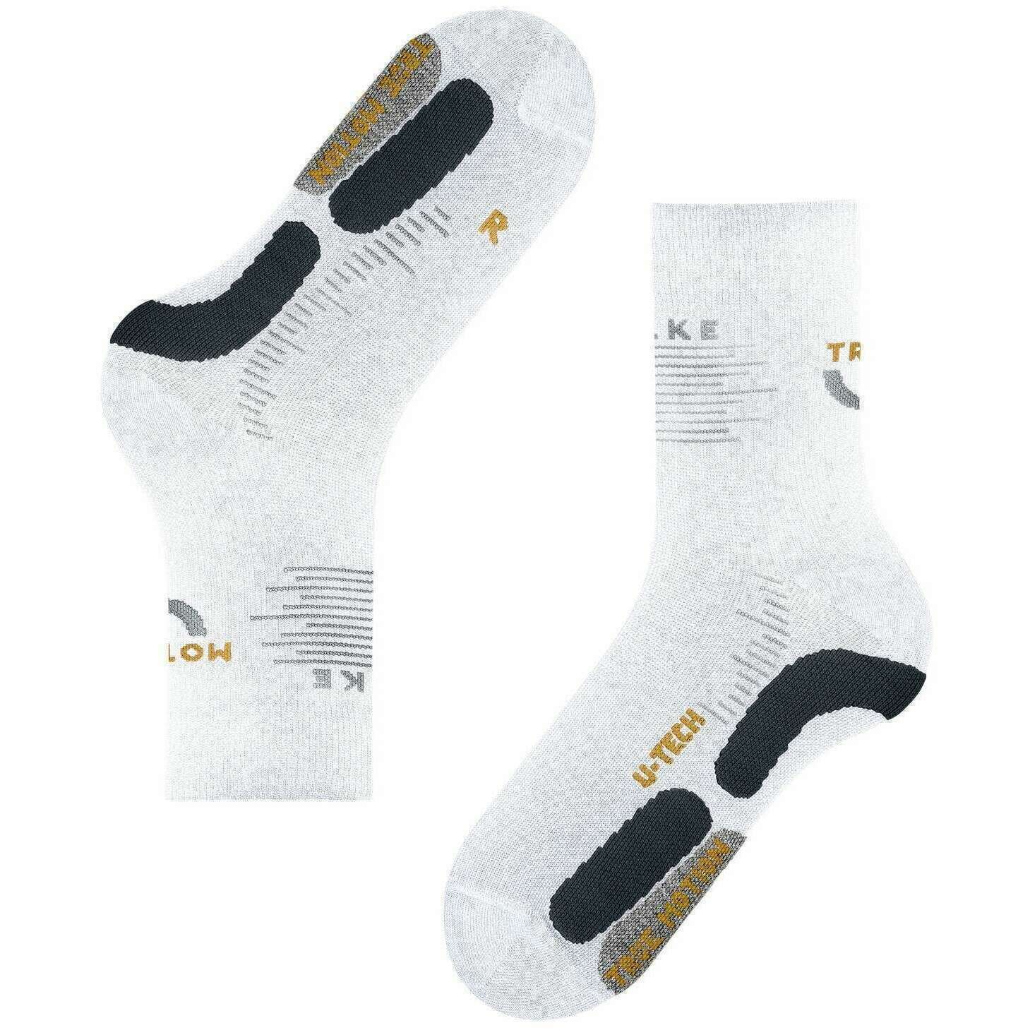 Perfect for women are these Falke white ru true motion running socks, they are also made from 39% polyamide, 34% lyocell, 15% polyester, 10% polypropylene and 2% elastane. Also the white socks are designed in a plain pattern, It is recommended to wash at 40 degrees to keep these socks in good condition. All the socks come complete with falke sock tags. The Falke RU True Motion Running Socks - White were developed in collaboration with True Motion to significantly improve stability and comfort. With fibre mix containing Lyocell, these running socks have quick drying wicking 3-layer construction to keep your feet dry and blister free. The U-Tech cushion in the heel area centres the heel thus reducing the pressure on the knees. These running socks are specifically adapted to narrower female feet.