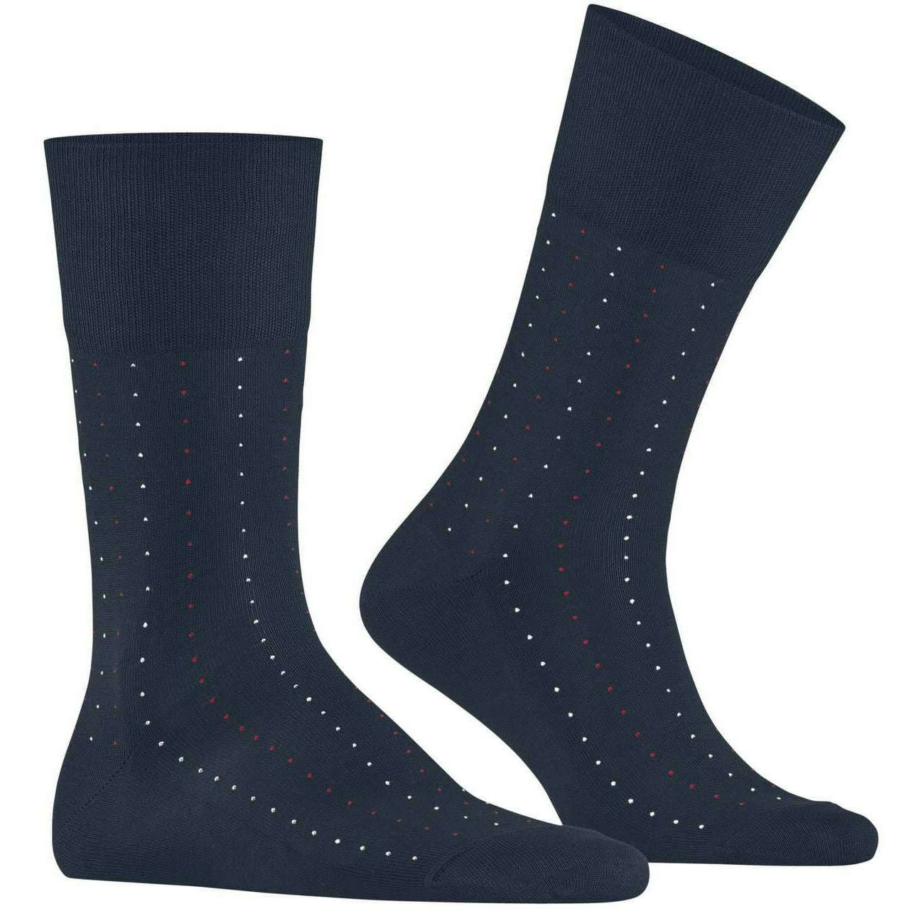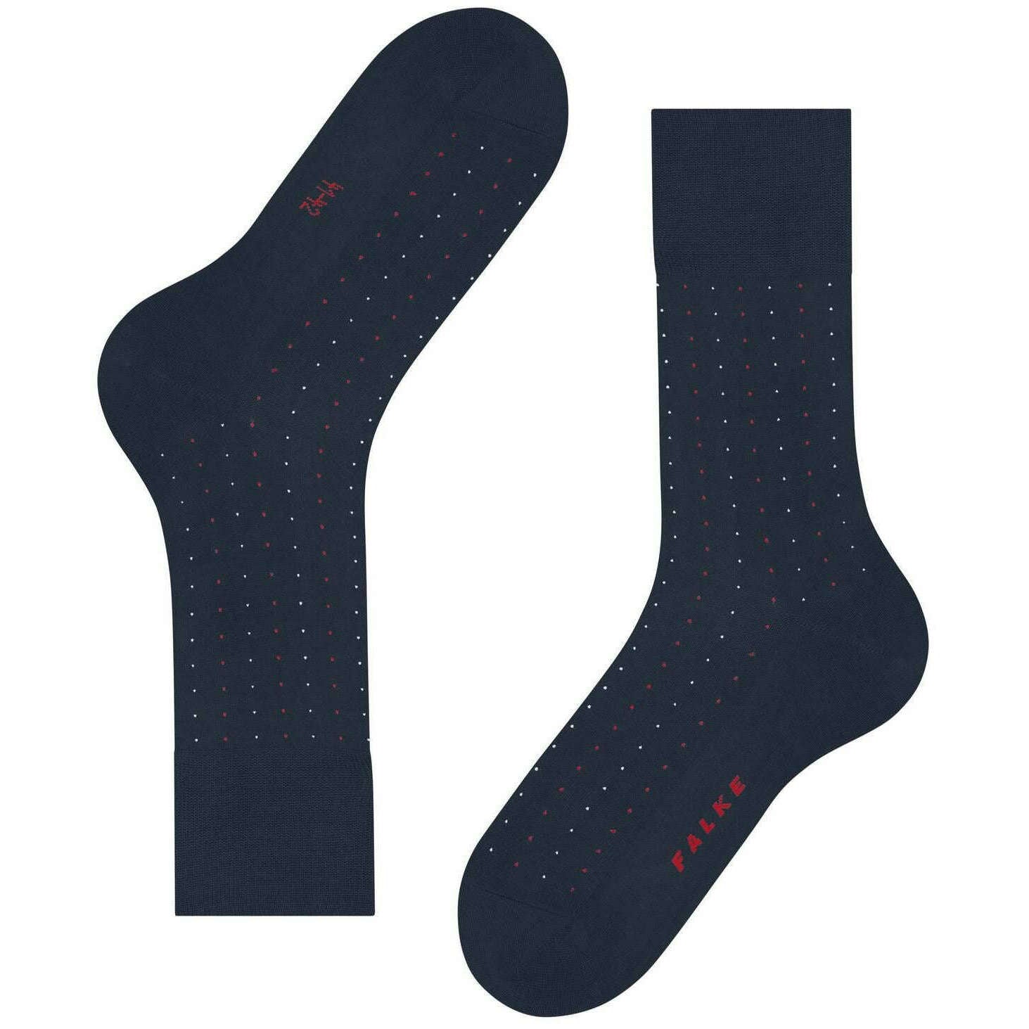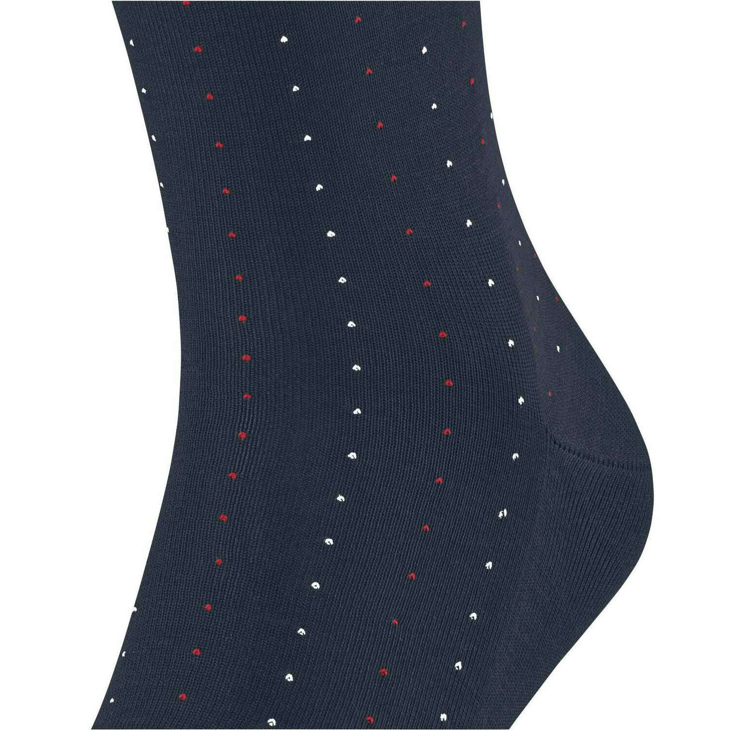 These men's tiago dotted line socks by the brand Falke are made from 93% cotton, 5% polyamide and 2% elastane and are showcased in blue. Also the space blue socks are designed in a pin dot pattern, It is recommended to wash at 30 degrees to keep these socks in good condition. All the socks come complete with falke tags. The Falke Tiago Dotted Line Socks - Space Blue are ideal for active men! Business or leisure these socks offer a two-tone dot design for a stylish look. Lightweight thanks to the high-quality Fil d' cosse cotton, you feel comfortable all day. The extended cuff ensures a wrinkle-free fit on the leg, while reinforced stress zones guarantee high durability. The unique colour brilliance and iconic appearance allow you to combine these socks with any outfit. With the Falke Perfect Fit, these socks make an excellent gift idea.