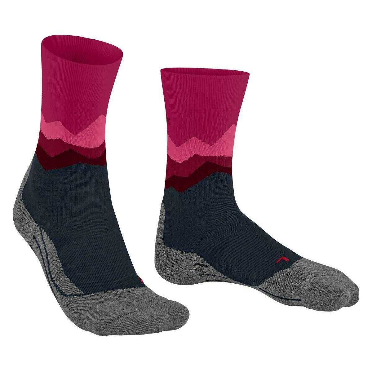 These women's tk2 crest explore trekking socks by the brand Falke are made from 43% polypropylene, 22% polyamide, 19% acrylic and 16% wool and are showcased in blue. It is recommended to machine wash at 30 degrees to keep these socks in good condition. All the socks come complete with falke sock tags. The Falke TK2 Crest Explore Trekking Socks - Space Blue feature a fashionable, colourful design that you are sure to love whilst providing your feet with maximum comfort thanks to the medium cushioning and merino wool mix. The thermal insulation allows these socks to be worn whatever the weather. The rapid moisture wicking 3-layer construction helps to keep your feet dry and blister free whilst the medium cushioning provides extra stress zone protection and durability.