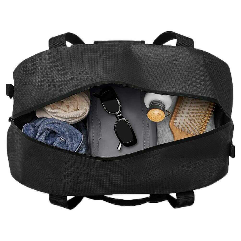 Introducing this unisex lightweight duoseal duffel bag by Gaston Luga, it is manufactured from 100% recycled polyester in a black colour. It measures 28cm(height) x 52cm(width) x 25cm(depth). It is recommended to use a simple damp cloth to keep this bag in good condition. All the bags come complete with gaston luga tags. The Gaston Luga Lightweight DuoSeal Duffel Bag - Black is a versatile and eco-conscious travel companion designed for those seeking functionality without compromising on style. Featuring an outer zippered pocket and adjustable shoulder strap for comfort, this duffel bag offers ample space and durability, making it ideal for weekend getaways, gym sessions, or daily commutes. This waterproof duffel bag blends style with functionality for all your adventures.