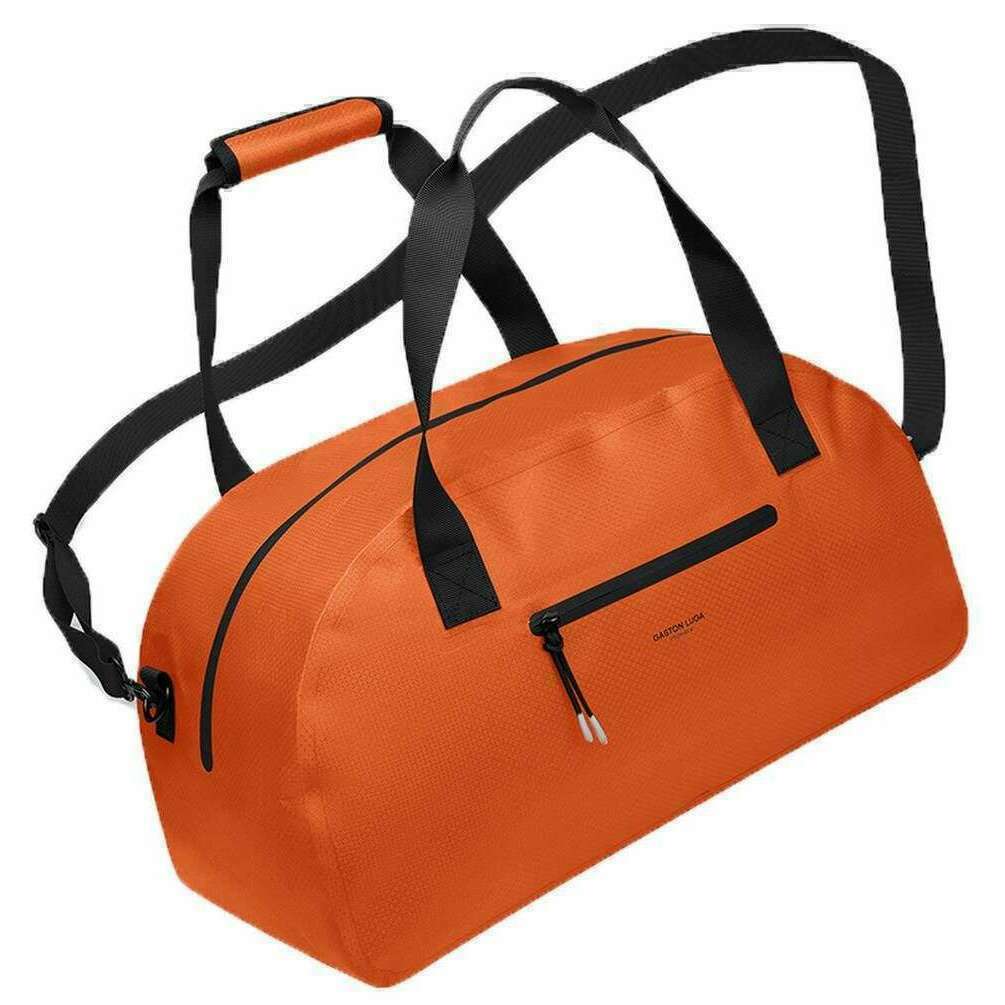 This well made unisex lightweight duoseal duffel bag from Gaston Luga comes in a orange flame colour and is manufactured from 100% recycled polyester. It measures 28cm(height) x 52cm(width) x 25cm(depth). It is recommended to use a simple damp cloth to keep this bag in good condition. All the bags come complete with gaston luga tags. The Gaston Luga Lightweight DuoSeal Duffel Bag - Orange Flame is a versatile and eco-conscious travel companion designed for those seeking functionality without compromising on style. Featuring an outer zippered pocket and adjustable shoulder strap for comfort, this duffel bag offers ample space and durability, making it ideal for weekend getaways, gym sessions, or daily commutes. This waterproof duffel bag blends style with functionality for all your adventures.