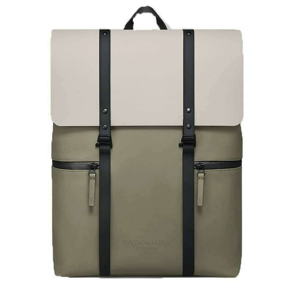 Perfect for men or women is this Gaston Luga cloud cream/sage splash 2.0 16" backpack, it is also made from 100% recycled polyester. It measures 45cm(height) x 35cm(width) x 13cm(depth). It is recommended to use a simple damp cloth to keep this bag in good condition. All the bags come complete with gaston luga tags. The Gaston Luga Splash 2.0 16" Backpack - Cloud Cream/Sage allows you to safeguard your devices during transit with a padded compartment that snugly fits a 16" laptop. The sleek double-strap flap closure keeps all your belongings secure while adding to the backpack's minimalist aesthetic. The adjustable shoulder straps and padded back panel ensure comfort during extended wear. This bag is an excellent choice for those seeking a reliable and stylish everyday backpack.