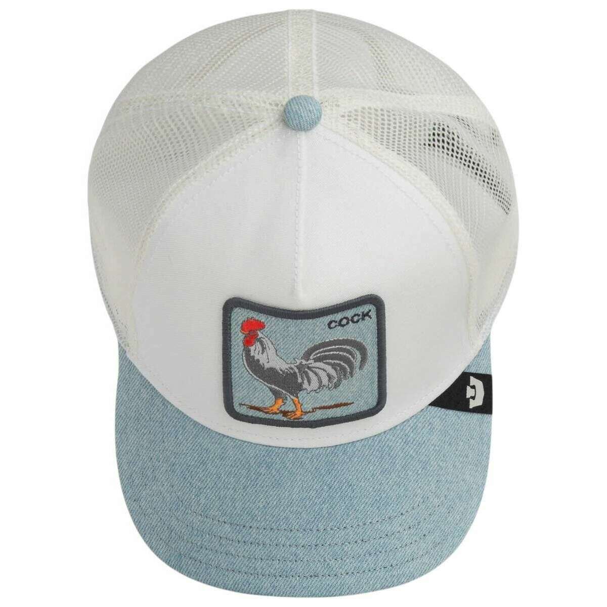 This unisex denim rooster trucker hat by the brand Goorin Bros is made from 57% polyester and 43% cotton and is showcased in blue. All the hats come complete with goorin bros tags. The Goorin Bros Denim Rooster Trucker Hat - Light Denim Blue blends timeless denim style with unmistakable Goorin Bros character. This cap merges a classic look with modern, high?quality embroidery, creating a statement piece that s easy to wear, bold in presence, and perfect for everyday outfits. The intricately embroidered rooster patch serves as a powerful focal point, giving the cap its strong and distinctive identity. Lightweight mesh at the back ensures optimal ventilation, while the adjustable snapback closure guarantees a consistently perfect fit. With its clean, summery denim finish and premium craftsmanship, this cap is ideal for anyone looking to combine timeless style, superior quality, and a confident appearance. A versatile essential for both relaxed and expressive looks.