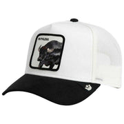 Brought to you by the brand Goorin Bros, this dust white/void black unisex suede ruthless trucker hat is made from 78% polyester and 22% cotton. All the hats come complete with goorin bros tags. The Goorin Bros Suede Ruthless Trucker Hat - Dust White/Void Black delivers striking strength with a clean, stylish aesthetic. This standout Goorin Bros design makes an immediate statement through its commanding bison patch symbolizing determination, dominance, and a fierce, unstoppable spirit. The high?quality deep?black suede visor adds a refined, premium touch, while the crisp white front panel creates a sharp contrast that perfectly highlights the intricate embroidery. A breathable mesh back ensures excellent comfort, and the adjustable snapback closure guarantees a personalised, secure fit for any occasion. Whether worn as a daily essential or as the standout highlight of an outfit, this cap is ideal for anyone who wants to combine strength, character, and urban style in one powerful accessory. A modern classic with unmistakable attitude.