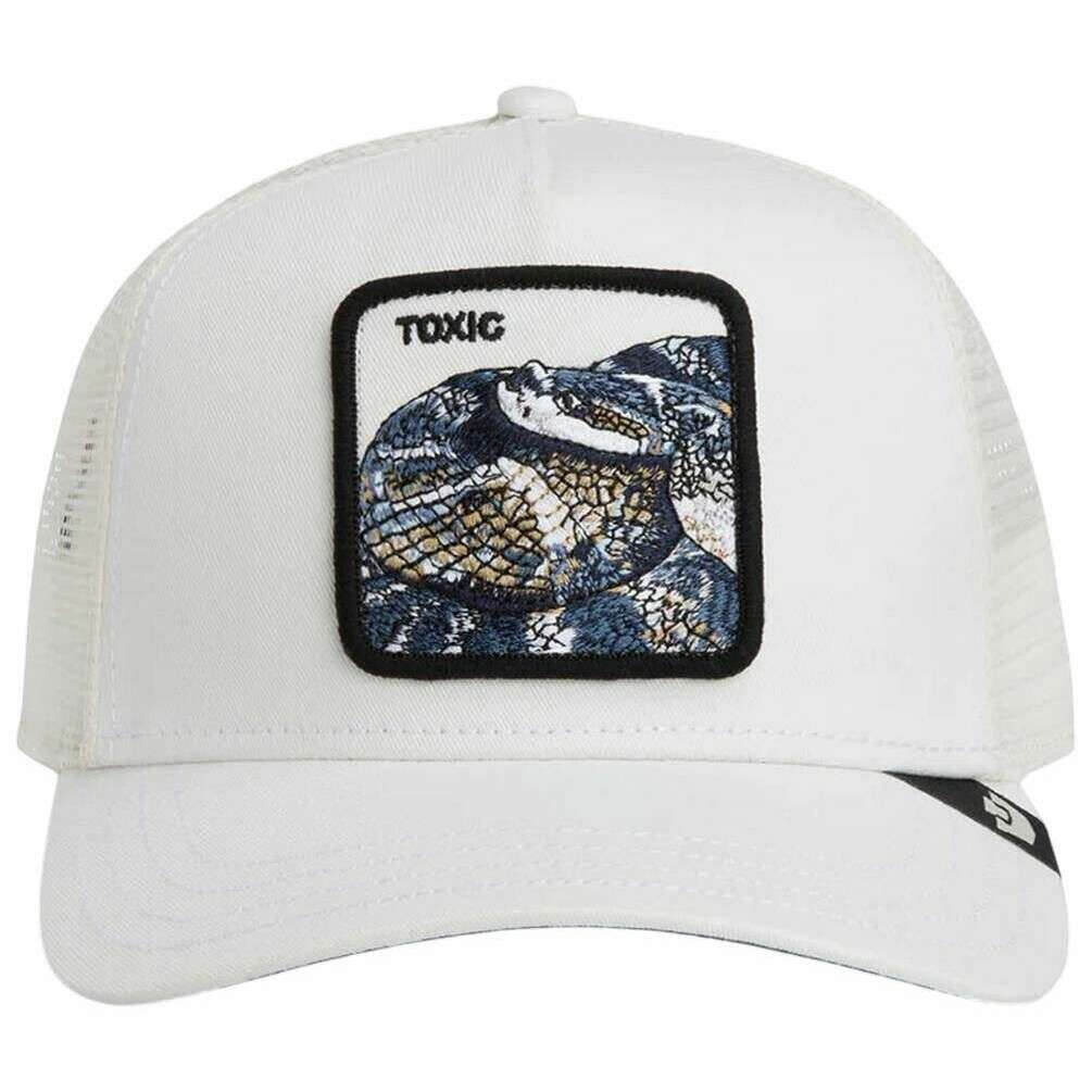 Perfect for men or women is this Goorin Bros dust white toxic trucker hat, it is also made from 57% polyester and 43% cotton. All the hats come complete with goorin bros tags. The Goorin Bros Toxic Trucker Hat - Dust White delivers a dark, mysterious streetwear edge with unmistakable attitude. This powerful Goorin Bros design radiates cool confidence and intensity, instantly making it a standout element of any urban outfit. The high?quality embroidered snake patch defines the cap s identity, symbolising danger, control, and sharp instinct. Its detailed craftsmanship creates a strong visual impact, while the breathable mesh back ensures comfortable airflow throughout the day. An adjustable snapback closure provides a secure, custom fit for effortless everyday wear.