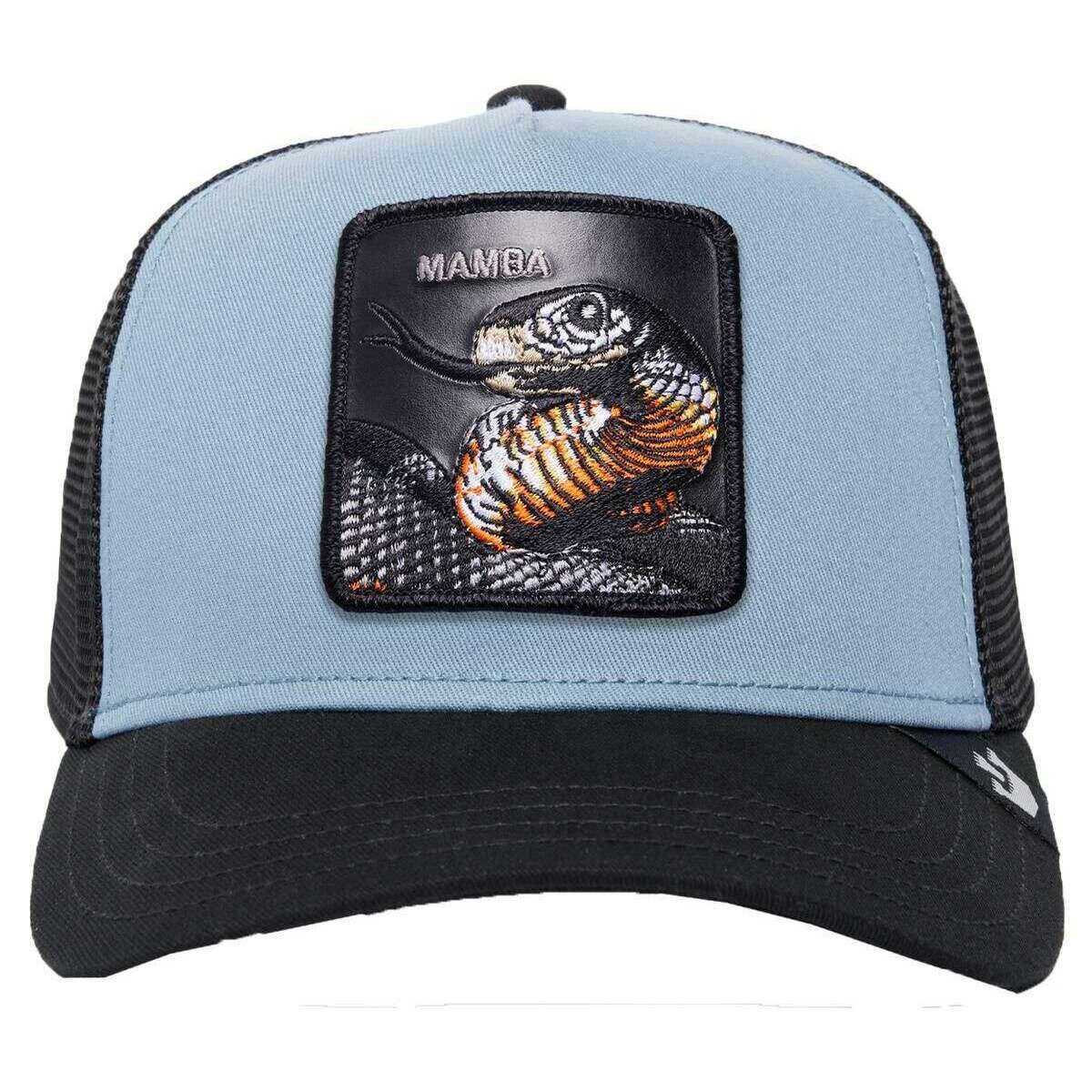 Using black 57% polyester and 43% cotton, this v2 mamba trucker hat by Goorin Bros is perfect for men or women and a must have. Also the blue/black hat is designed in a 2-tone pattern, All the hats come complete with goorin bros tags. The Goorin Bros V2 Mamba Trucker Hat - Blue/Black is an eye-catching trucker hat that will stand out in any crowd. Made to be worn by everyone and fits most with an adjustable back. A guaranteed comfortable experience with breathable mesh backing and high-quality material. This hat gives fun and casual everyday vibes, with its two-toned colouring and cool snake design.