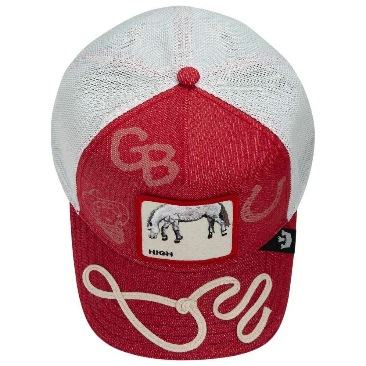 Using red 57% polyester and 43% cotton, this way up trucker hat by Goorin Bros is perfect for men or women and a must have. All the hats come complete with goorin bros tags. The Goorin Bros Way Up Trucker Hat - Red is made for anyone who rides through life with confidence, charisma, and a love for standout looks. With its detailed horse patch, lasso?inspired embroidery on the brim, and iconic horseshoe prints, this cap brings pure cowboy spirit straight into the urban jungle. The vibrant red front panel, paired with fresh white accents and a structured denim?look visor, creates a striking contrast that instantly sets it apart. Breathable mesh ensures lasting comfort, while the adjustable snapback closure guarantees a perfectly tailored fit.