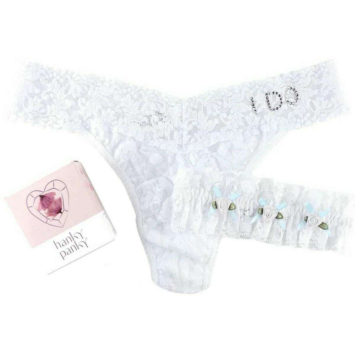 Hanky Panky I Do Low Rise Thong and Garter Set - Shimmer White