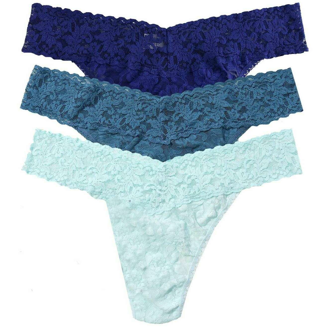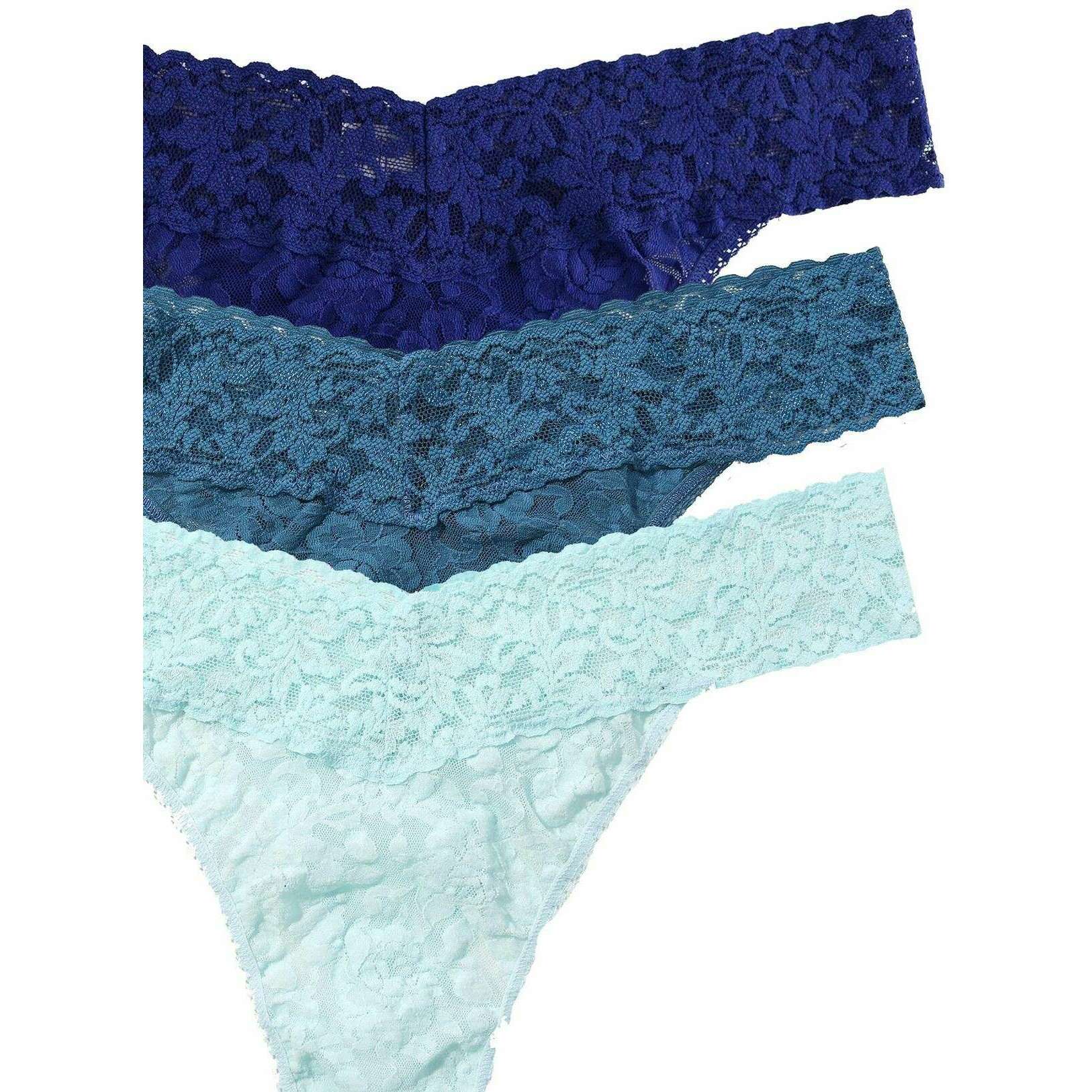Hanky Panky Signature Lace Original Rise 3 Pack Thong - Odyssey Blue/Storm Cloud/Celeste