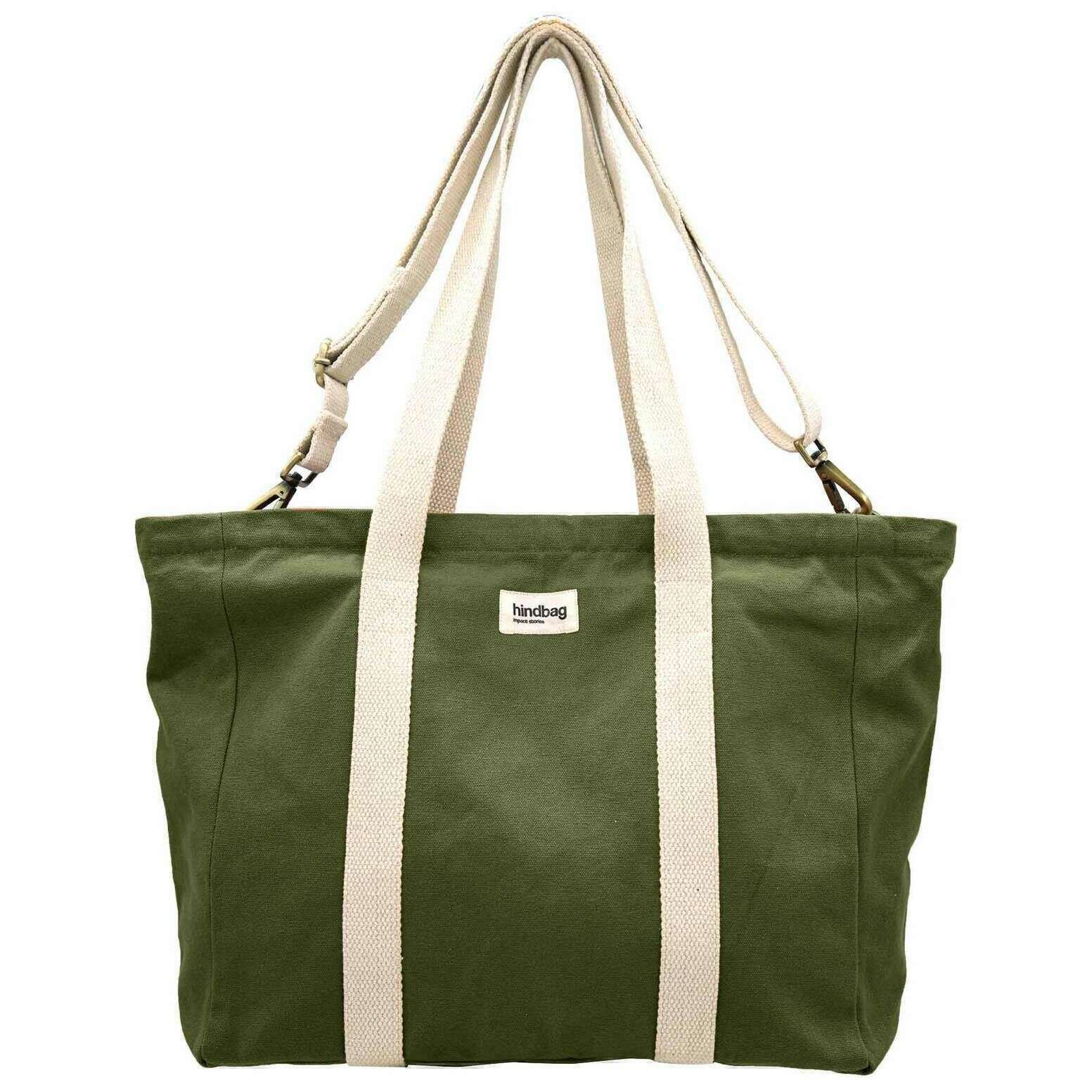 Using green 100% organic cotton, this cesar small tote bag by Hindbag is perfect for men or women and a must have. It measures 33cm(height) x 51cm(width) x 14cm(depth). All the bags come complete with hindbag packaging. The Hindbag Cesar Small Tote Bag - Olive Green is a versatile and eco-conscious accessory designed for everyday use. Crafted from thick, GOTS-certified organic cotton, this tote combines durability with sustainability. The spacious interior makes it ideal for carrying essentials, including a medium-sized laptop in an Ava case. Featuring a secure zip closure and an inner pocket for organization, the design of this bag allows for multiple carrying options, over the shoulder, across the body, or by hand, catering to various preferences.
