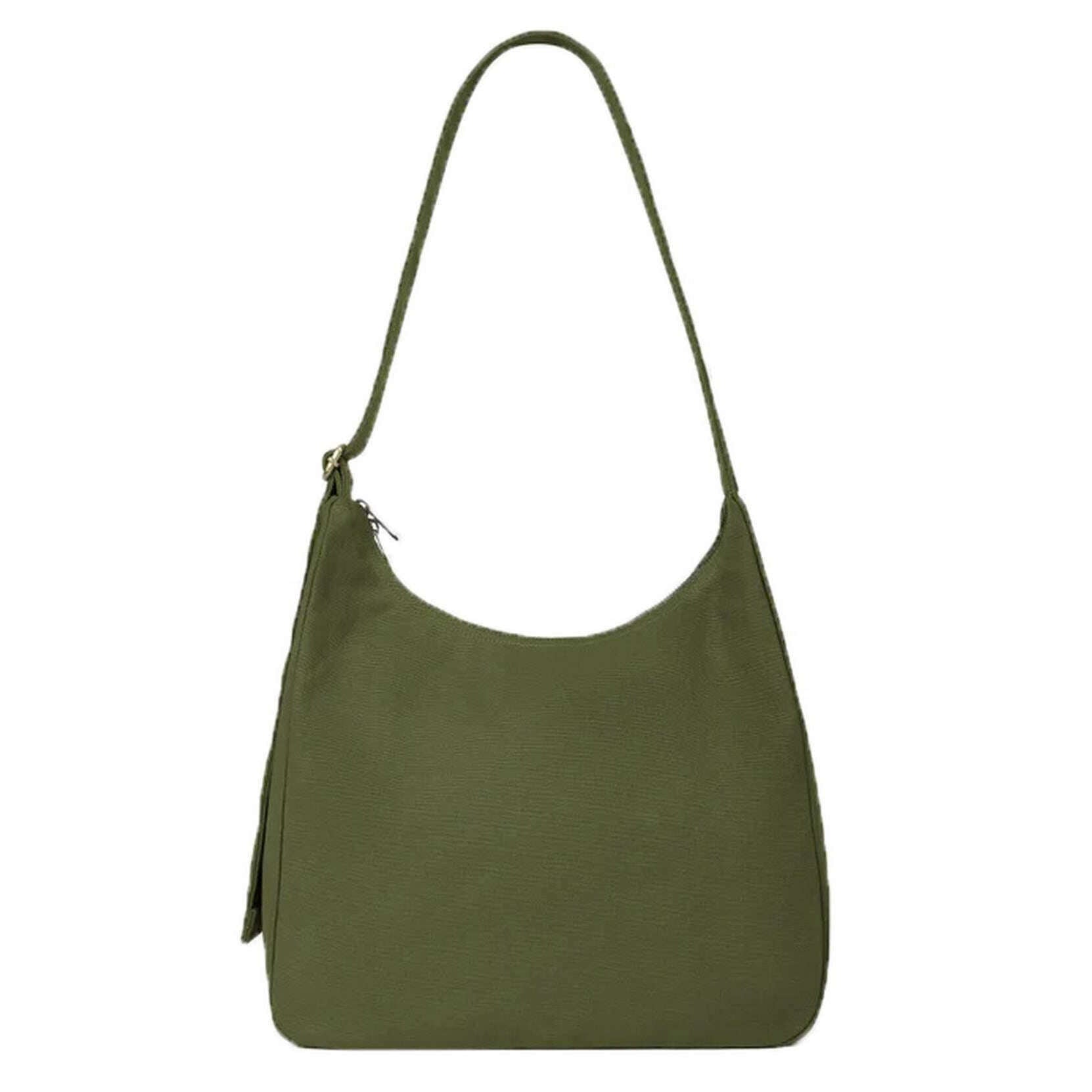 Perfect for men or women is this Hindbag olive green claire hobo bag, it is also made from 100% organic cotton (500g/m2). It measures 29cm(height) x 36cm(width) x 13cm(depth). All the bags come complete with hindbag packaging. The Hindbag Claire Hobo Bag - Olive Green is the perfect large shoulder bag to accompany your busy days. Featuring a double zip closure that makes it easy to open and close, this bag holds essentials like a wallet, phone, keys, maybe a small tablet, makeup pouch, or sunglasses with ease. The inner zip pocket keeps your essentials protected and within reach. The adjustable strap adapts to your needs and can be worn over the shoulder or crossbody for optimal comfort. Perfect for everyday wear this bag is comfort and style rolled into one.