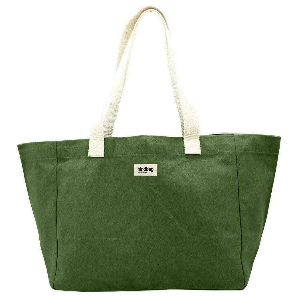 This well made unisex claude beach tote bag from Hindbag comes in a olive green colour and is manufactured from 100% organic cotton. It measures 33cm(height) x 40cm(width) x 23cm(depth). All the bags come complete with hindbag packaging. The Hindbag Claude Beach Tote Bag - Olive Green is a versatile and stylish bag crafted from eco-friendly material. This Claude Tote offers a generous 33-liter capacity, making it suitable for various occasions such as shopping, beach outings, or daily commutes. The magnetic snap button ensures the bag remains closed, keeping your belongings secure while allowing easy access.