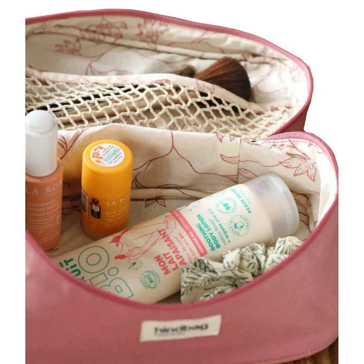 Designer Hindbag has brought you this unisex 100% organic cotton bag using blush pink tones. It measures 13.5cm(height) x 16cm(width) x 25cm(depth). All the bags come complete with hindbag packaging. The Hindbag Gaspard Vanity Bag - Blush Pink offers travellers and everyday users alike a convenient and stylish way to keep their toiletries organized and accessible. The interior net is perfect for neatly arranging toiletries, cosmetics, and other personal items. Available in a range of colours, this fashionable accessory represents a harmonious fusion of functionality and aesthetics, catering to those who value both style and practicality in their journey.