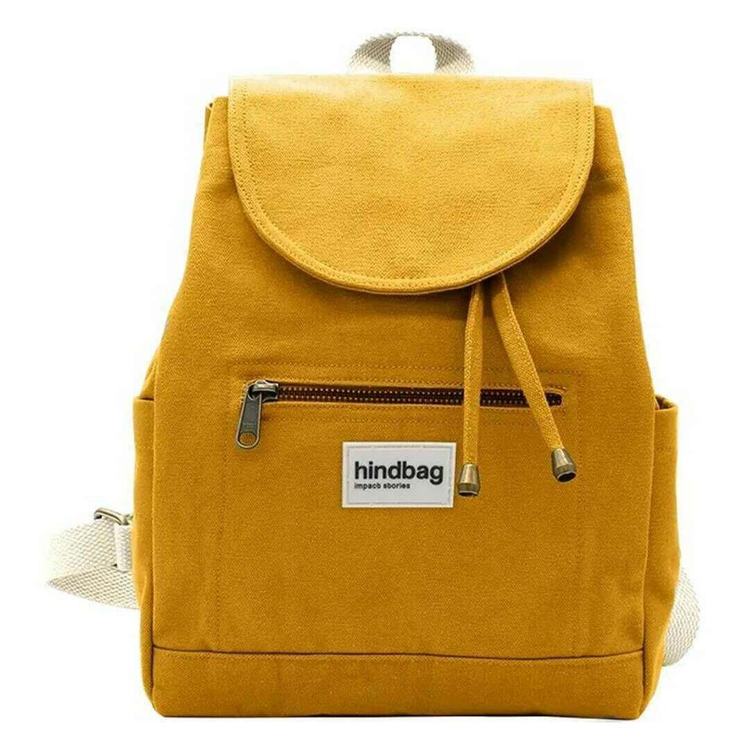 This unisex mini eliot small backpack by the brand Hindbag is made from 100% organic cotton and is showcased in yellow. It measures 31cm(height) x 24cm(width) x 13cm(depth). All the bags come complete with hindbag packaging. The Hindbag Mini Eliot Small Backpack - Saffron Yellow is suitable for young and old alike! Featuring two exterior pockets and one interior pocket, you can slip in what you need while keeping your hands free. The timeless design of this mini backpack blend vintage charm with modern functionality, making them a popular choice for daily use.