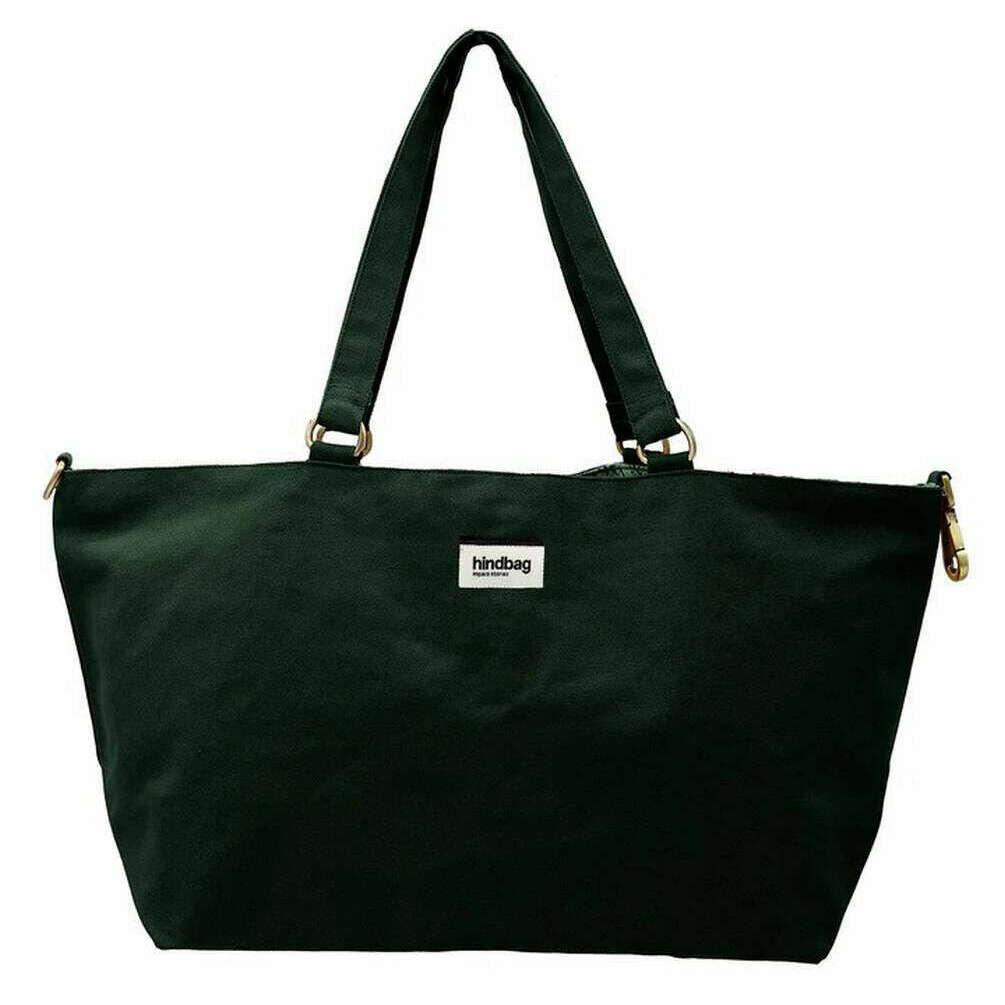 This raphaelle tote bag for men or women is fashioned by the brand Hindbag in a green colour and is made from 100% organic cotton (500g/m2). It measures 26cm(height) x 58cm(width) x 19cm(depth). All the bags come complete with hindbag packaging. The Hindbag Raphaelle Tote Bag - Forest Green is the very definition of effortless versatility. Simple yet practical, this bag features a large, zipped pocket which allows you to have all your essentials close at hand. With a double closure with magnetic button and carabiner hooks, you can change the look of this tote to go from a classic tote bag to a more trendy trapeze shape. Minimalist in concept, the tote bag size and presence naturally draw the eye, yet its understated silhouette keeps it elegant.